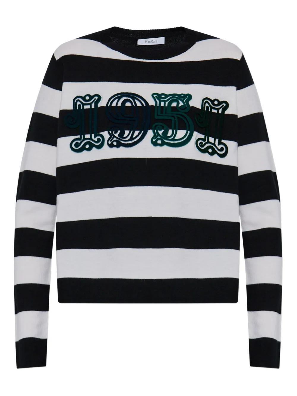 black and white horizontal stripes embroidered '1951' detail crew neck long sleeves
