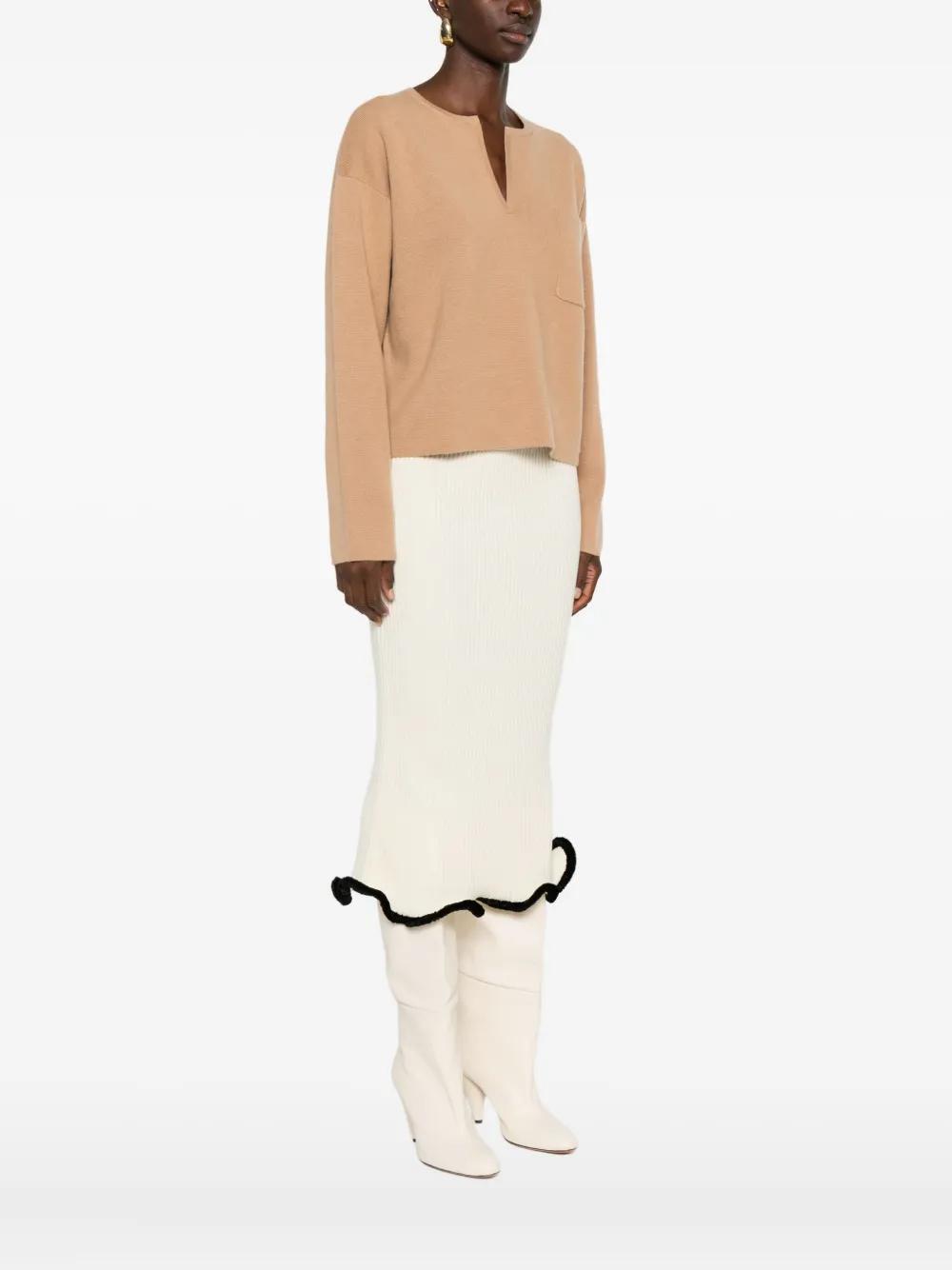 light brown cashmere fine knit roll neck long sleeves ribbed trim straight hem