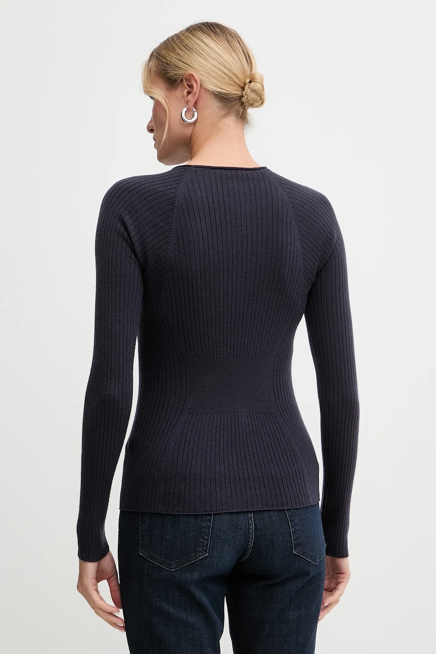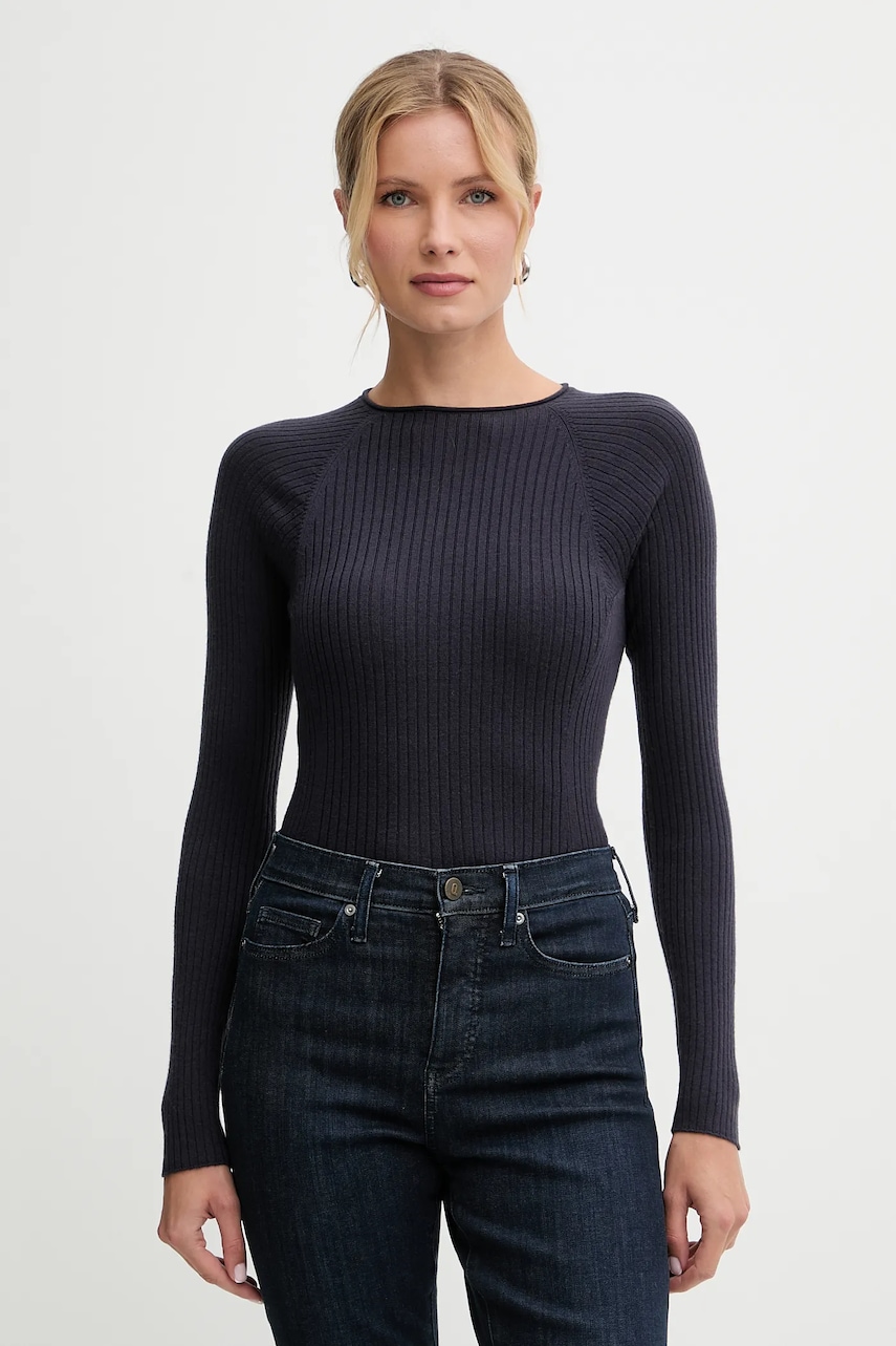 - Ten model został wyprodukowany przy użyciu wełny ze starannie wybranych fabryk, które dbają o środowisko i dobrostan zwierząt. - Dopasowany, podkreślający sylwetkę fason. - Długi rękaw. - Prążkowana dzianina. - Okrągły dekolt. - Długość: 58 cm. - Długość rękawa: 62 cm. - Szerokość pod pachami: 39 cm. - Wymiary podane dla rozmiaru: S.