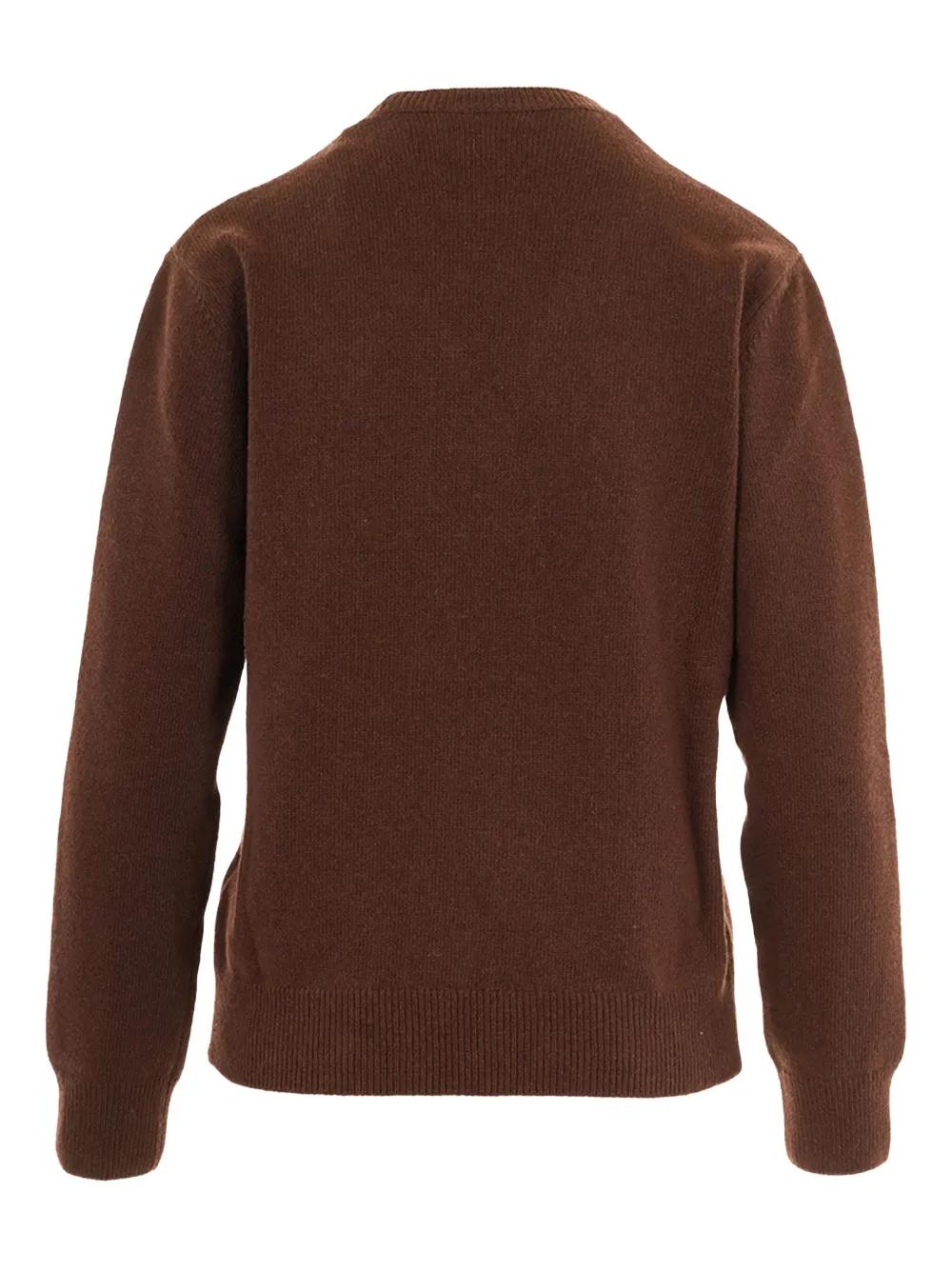 brown intarsia design round neck long sleeves ribbed cuffs ribbed hem