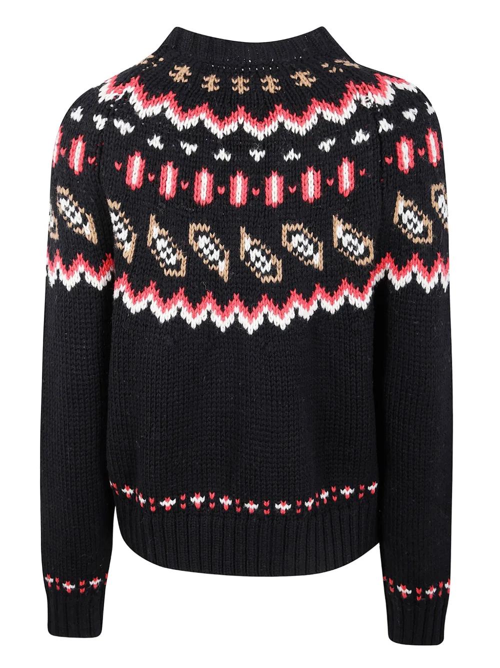 black intarsia design round neck long sleeves ribbed cuffs and hem