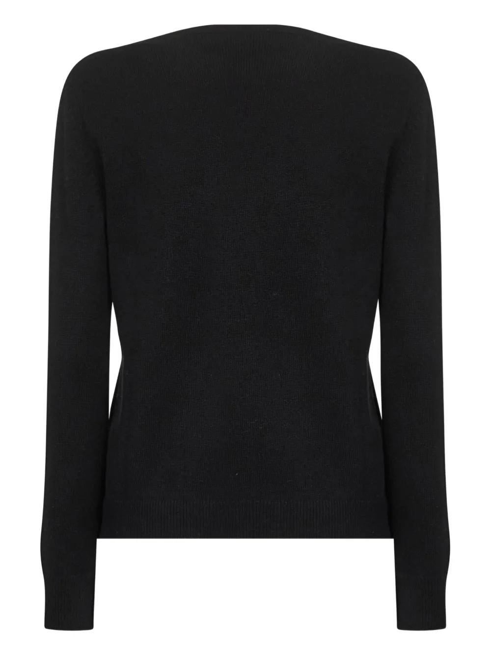 black ribbed crewneck long sleeves St Barth embroidery jacquard lettering at front ribbed trims