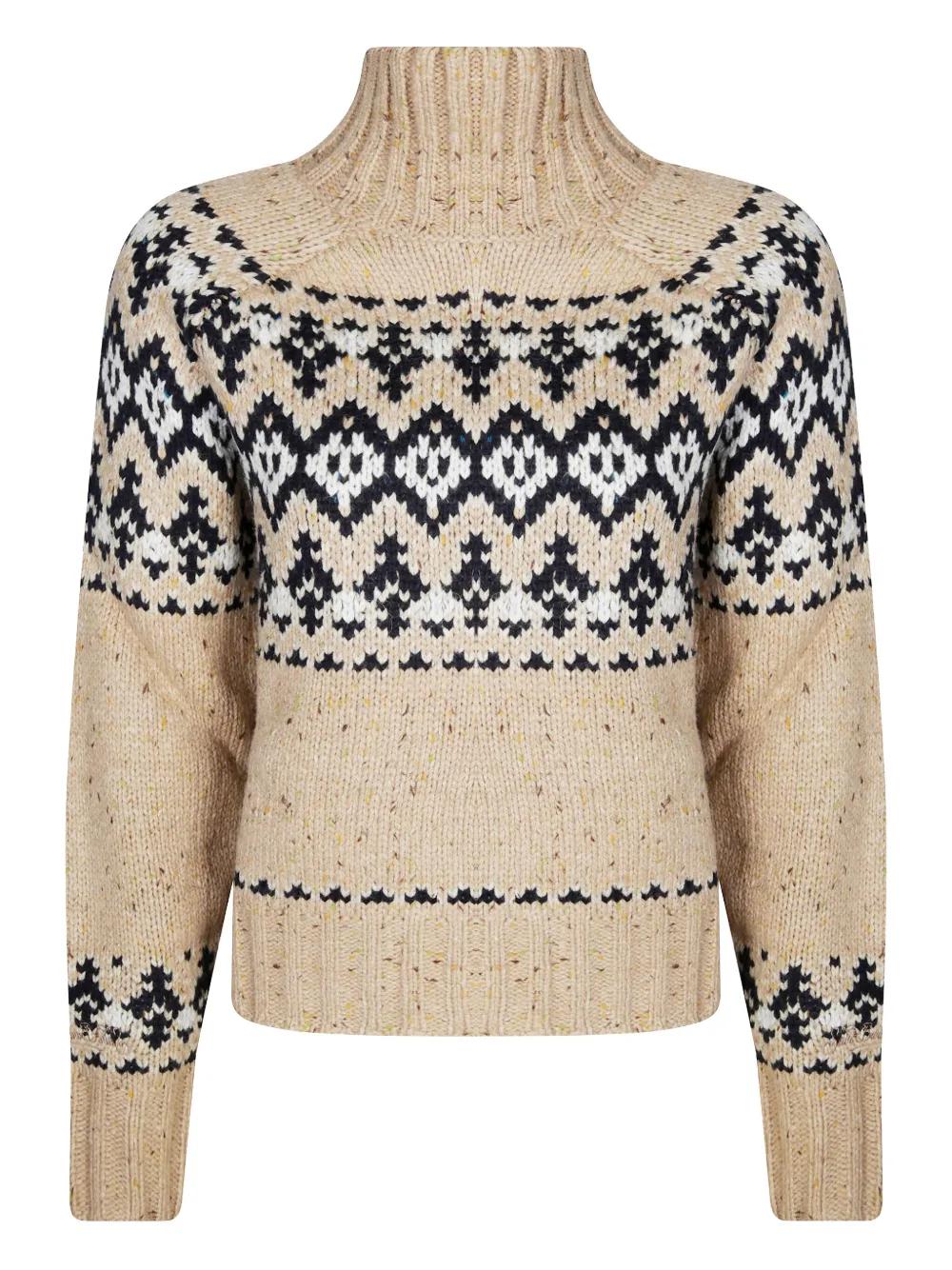 beige fair isle pattern turtleneck long sleeves