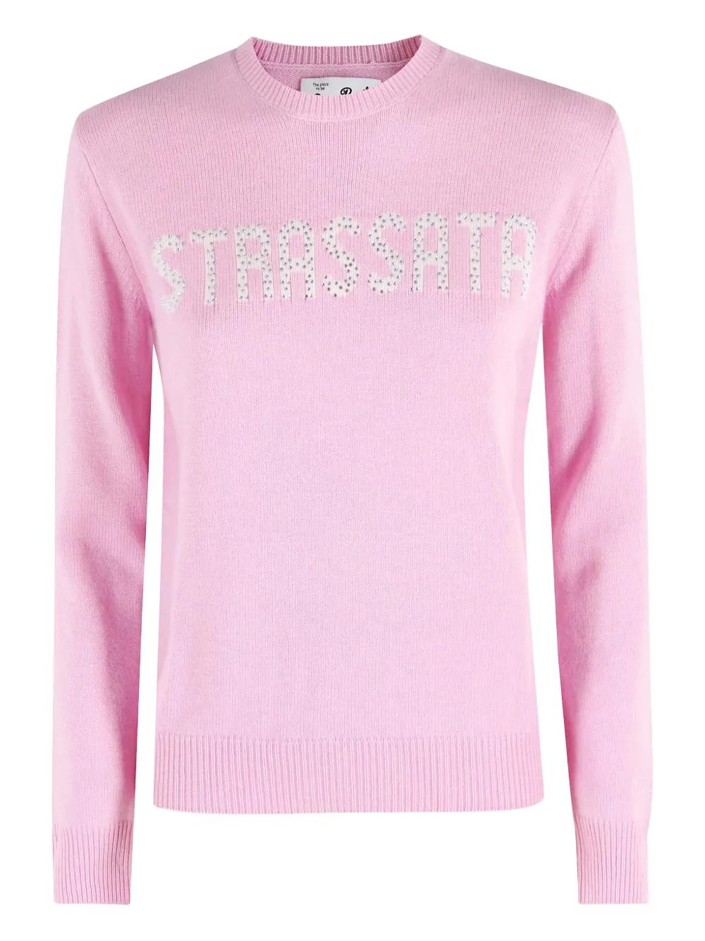 pink Strassata rhinestone-appliqué crew neck long sleeve