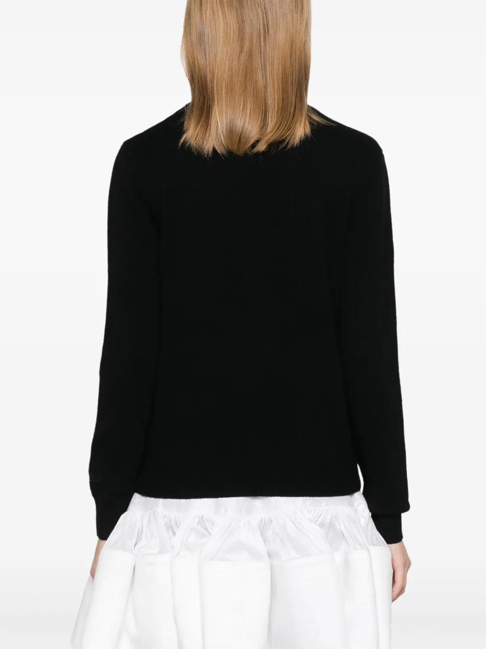 black knitted construction ribbed trim crew neck long sleeves embroidered logo at the sleeve intarsia-knit text rhinestone embellishment straight hem