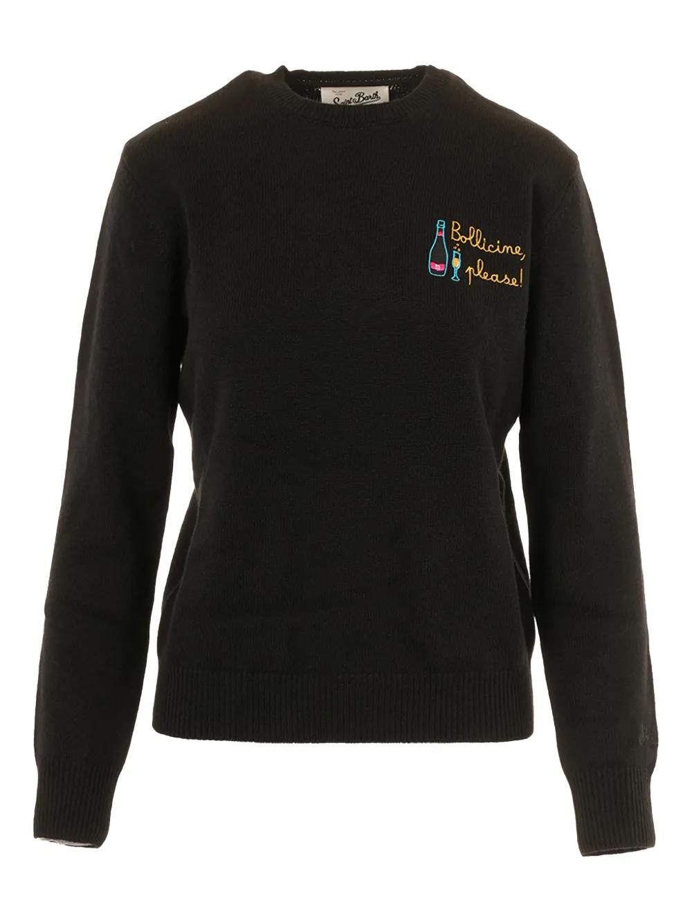 black crew neck long sleeves embroidered design ribbed cuffs ribbed hem