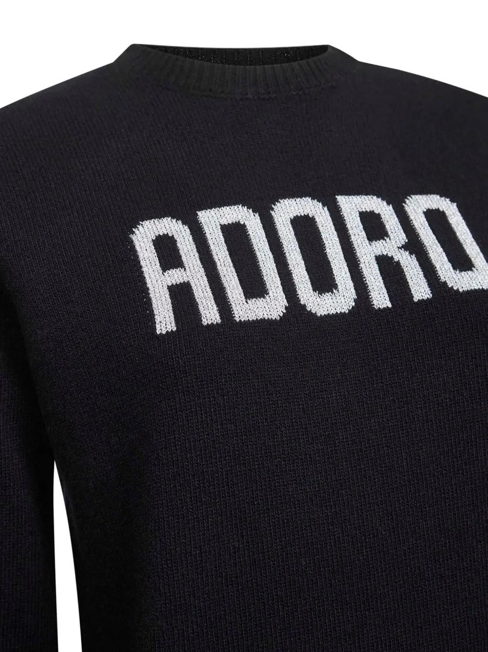 black crew neck long sleeves jacquard lettering ribbed cuffs and hem