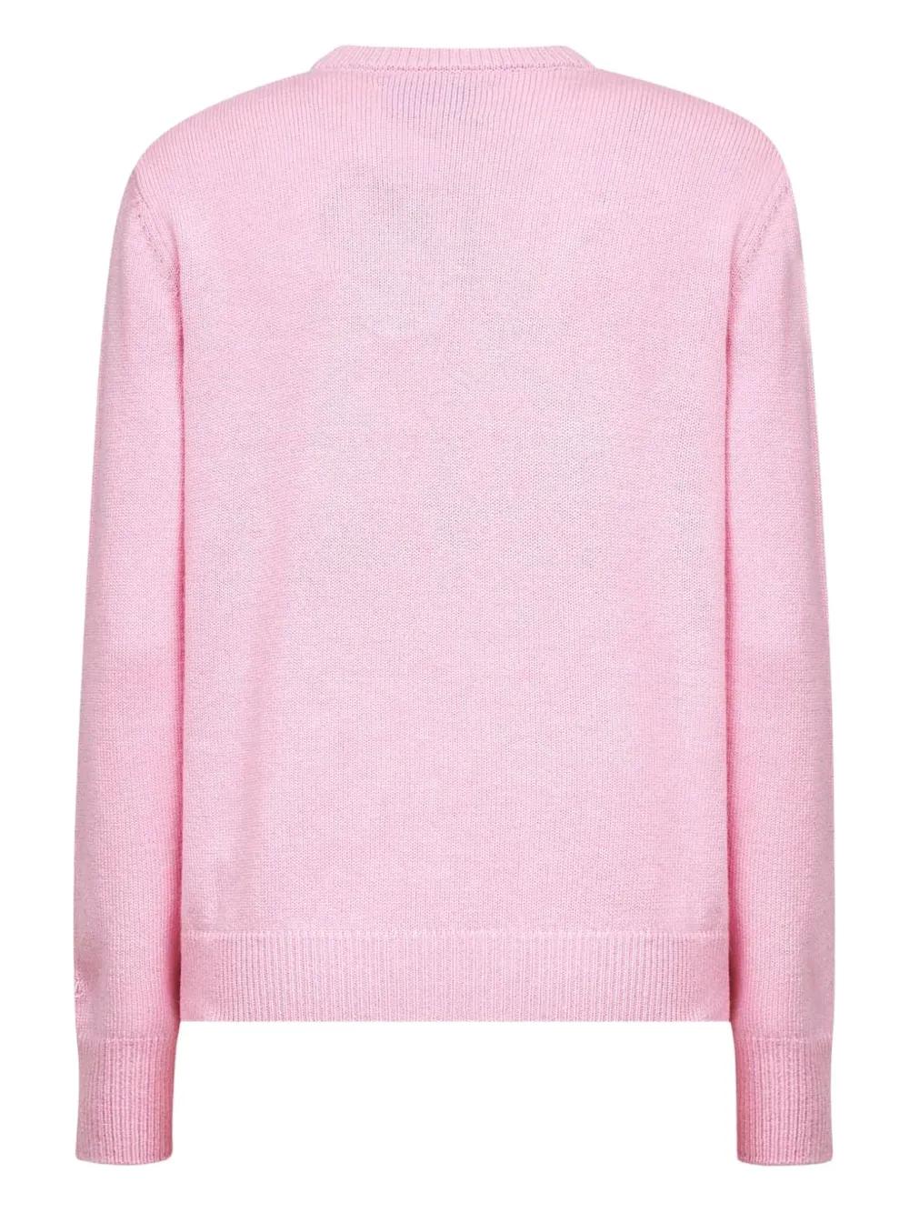 pink jacquard ski-motif ribbed crew-neck long sleeves ribbed cuffs ribbed hemline