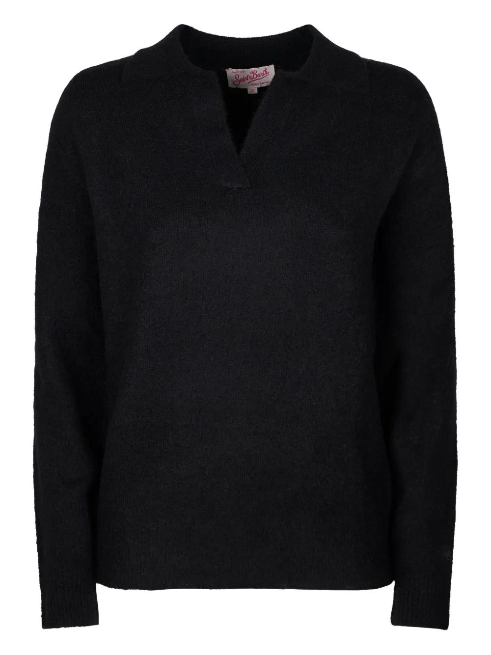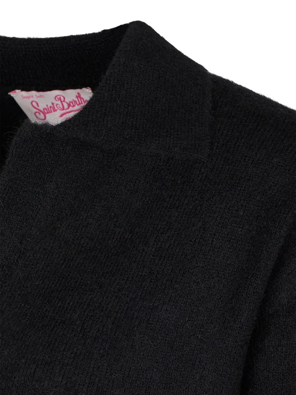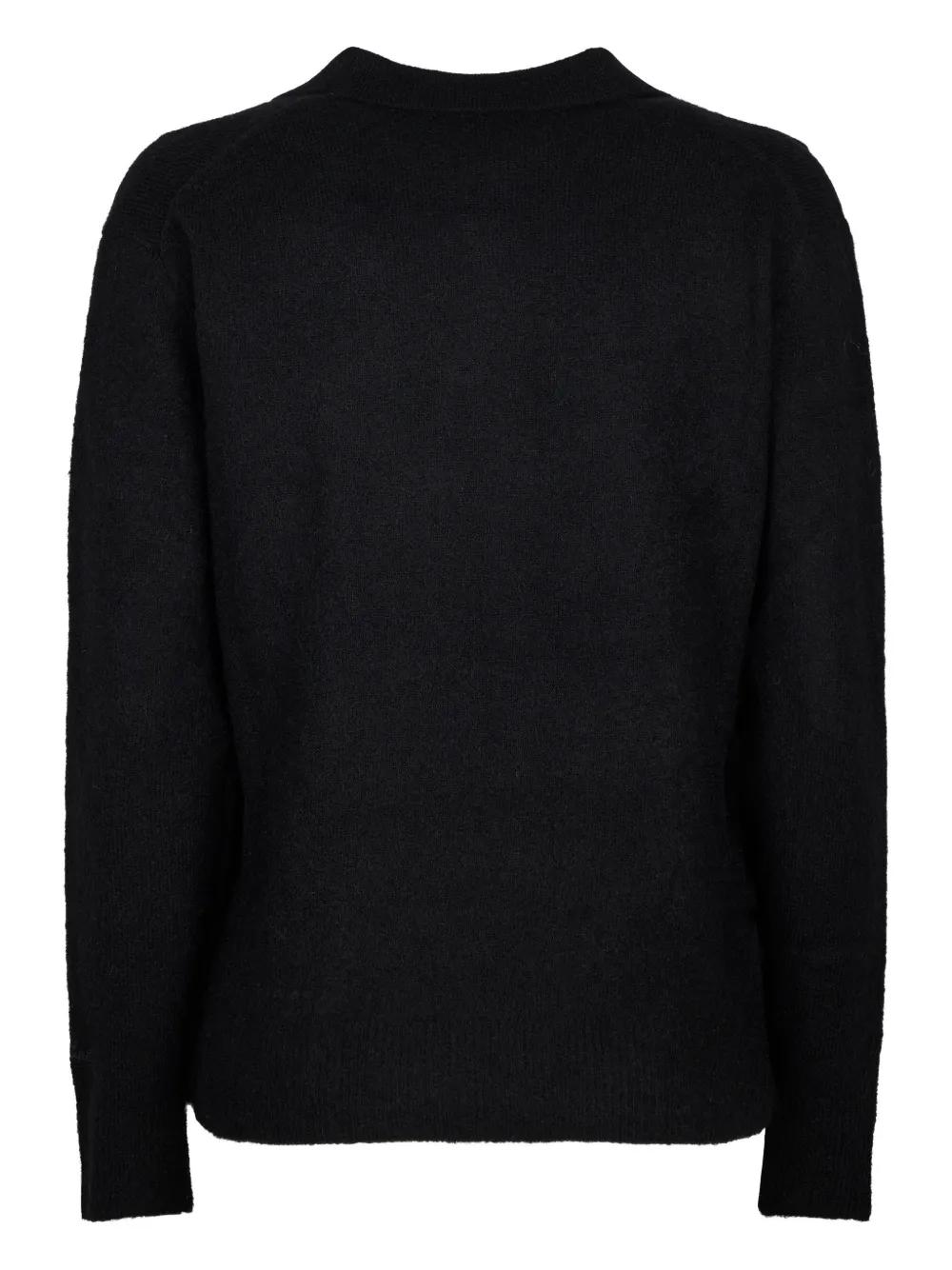 black openwork knit ruffled detail ribbed hem ribbed cuffs crew neck