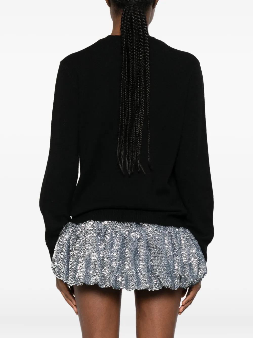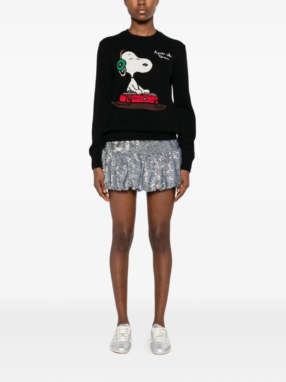 black intarsia knit Snoopy motif round neck long sleeves ribbed cuffs ribbed hem