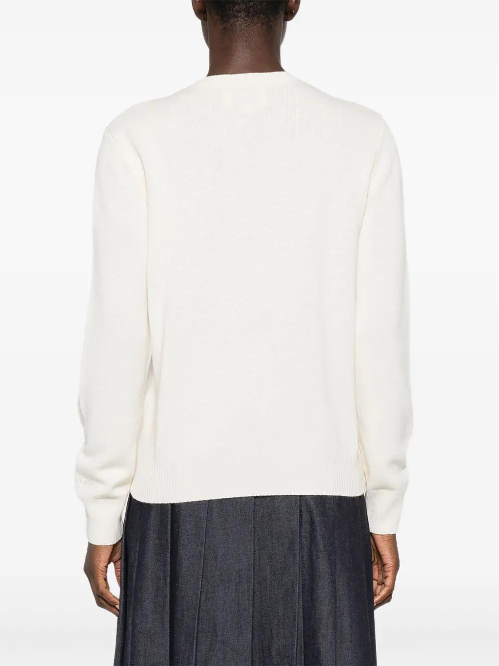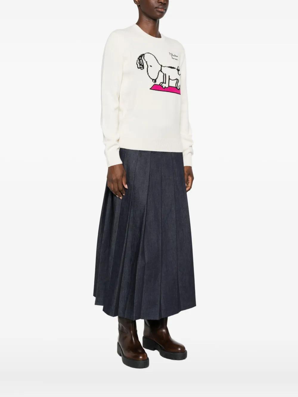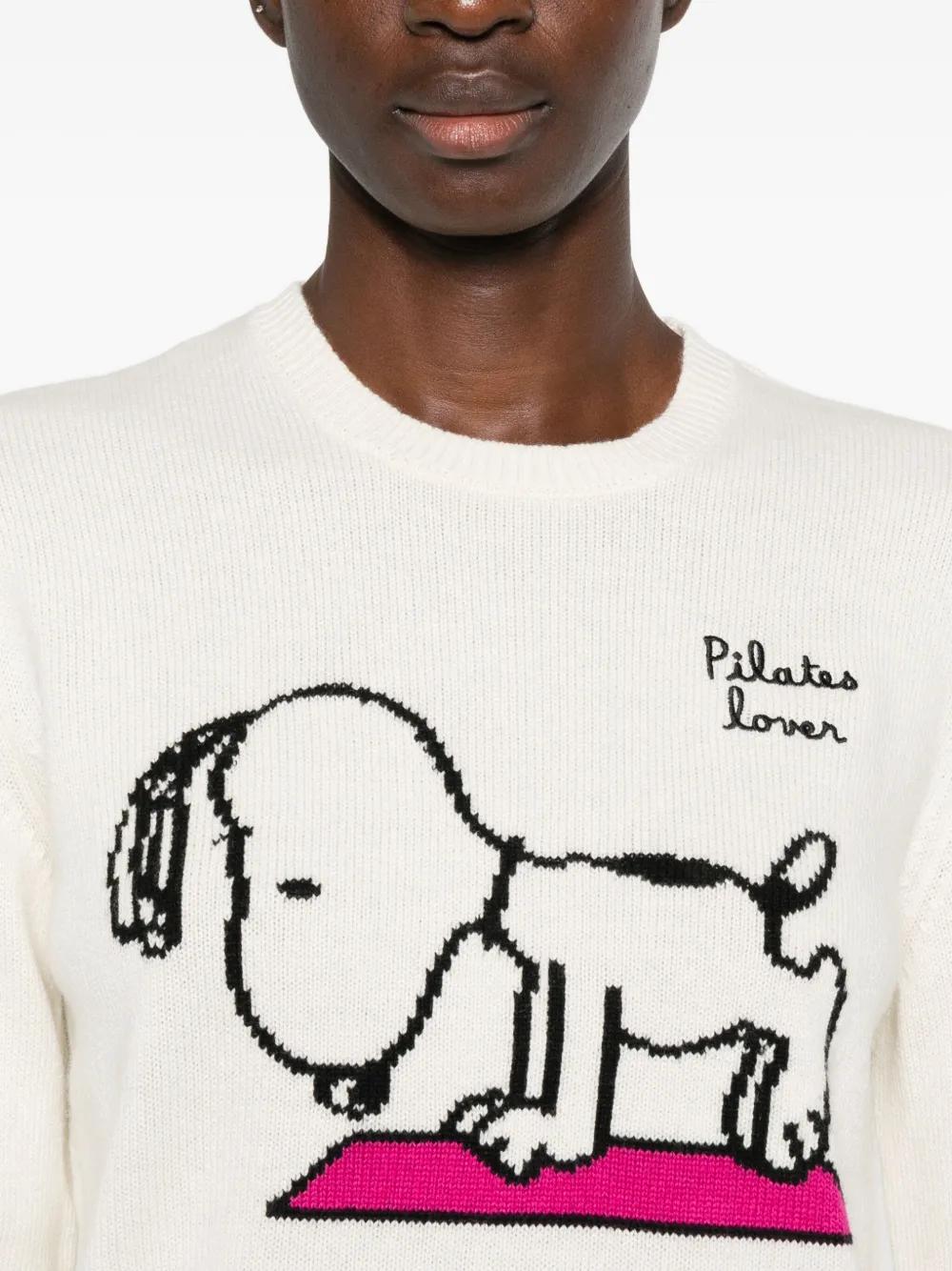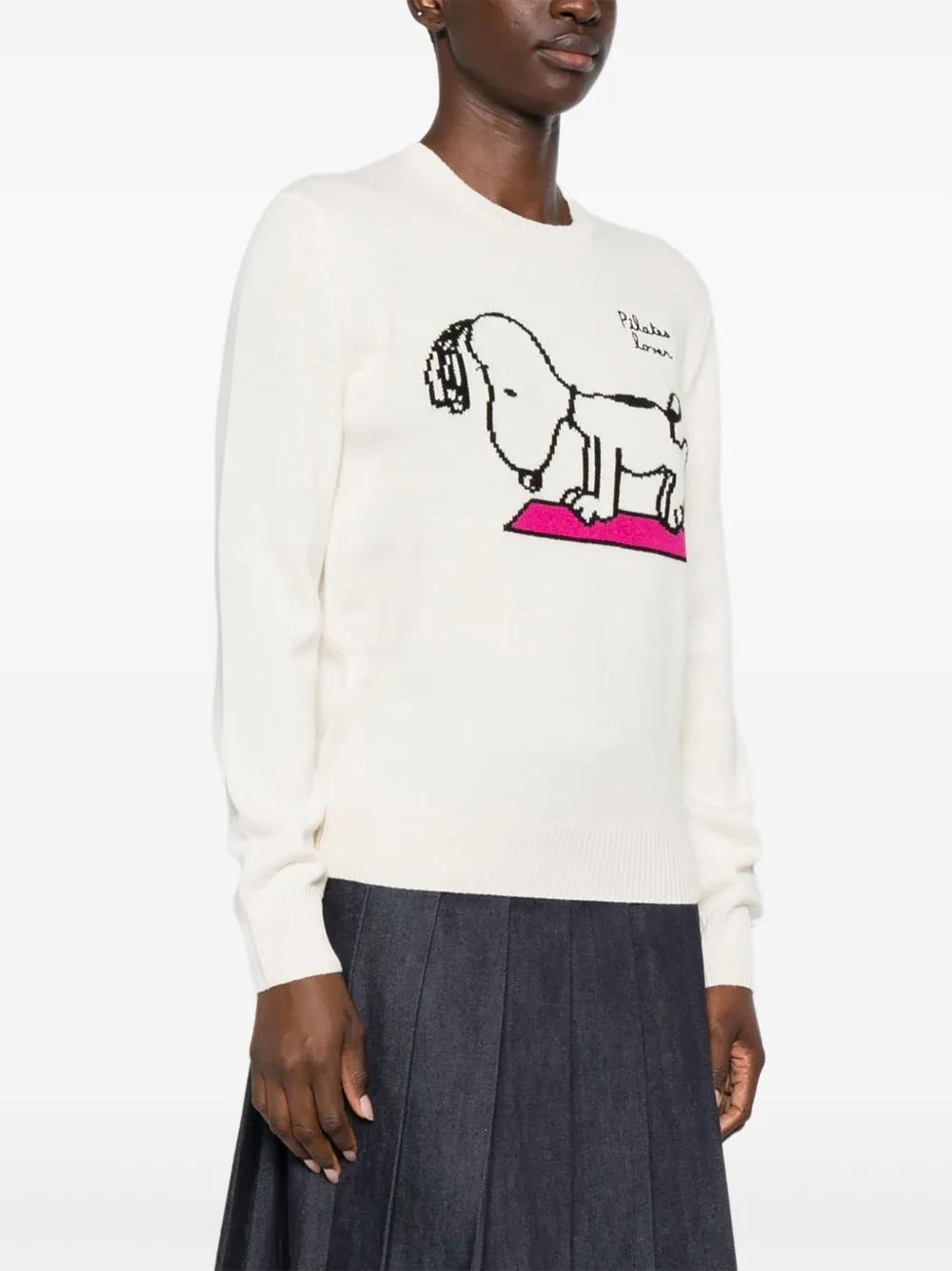 white intarsia knit Snoopy motif round neck long sleeves ribbed hem ribbed cuffs