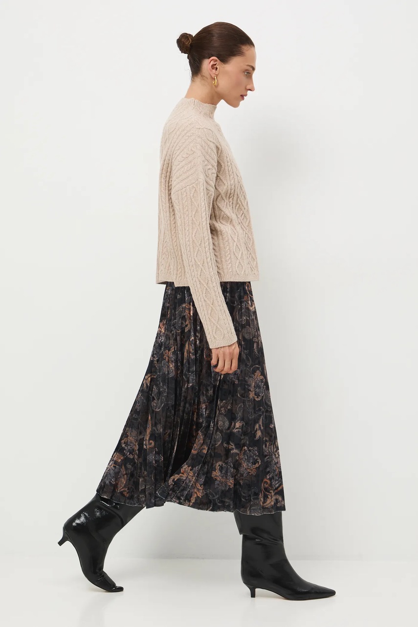 - Sweter w fasonie oversize zapewnia komfort i swobodę ruchów. Pasuje do różnych stylów, podkreślając casualowy charakter stylizacji. - Długi rękaw. - Obniżona linia ramion. - Model z półgolfem. - Wykończenie ze ściągacza. - Warkoczowy splot. - Melanżowa dzianina. - Długość rękawa(mierzona od dekoltu): 68,8 cm. - Długość: 54,5 cm. - Szerokość w biuście: 55,5 cm. - Wymiary podane dla rozmiaru: S.