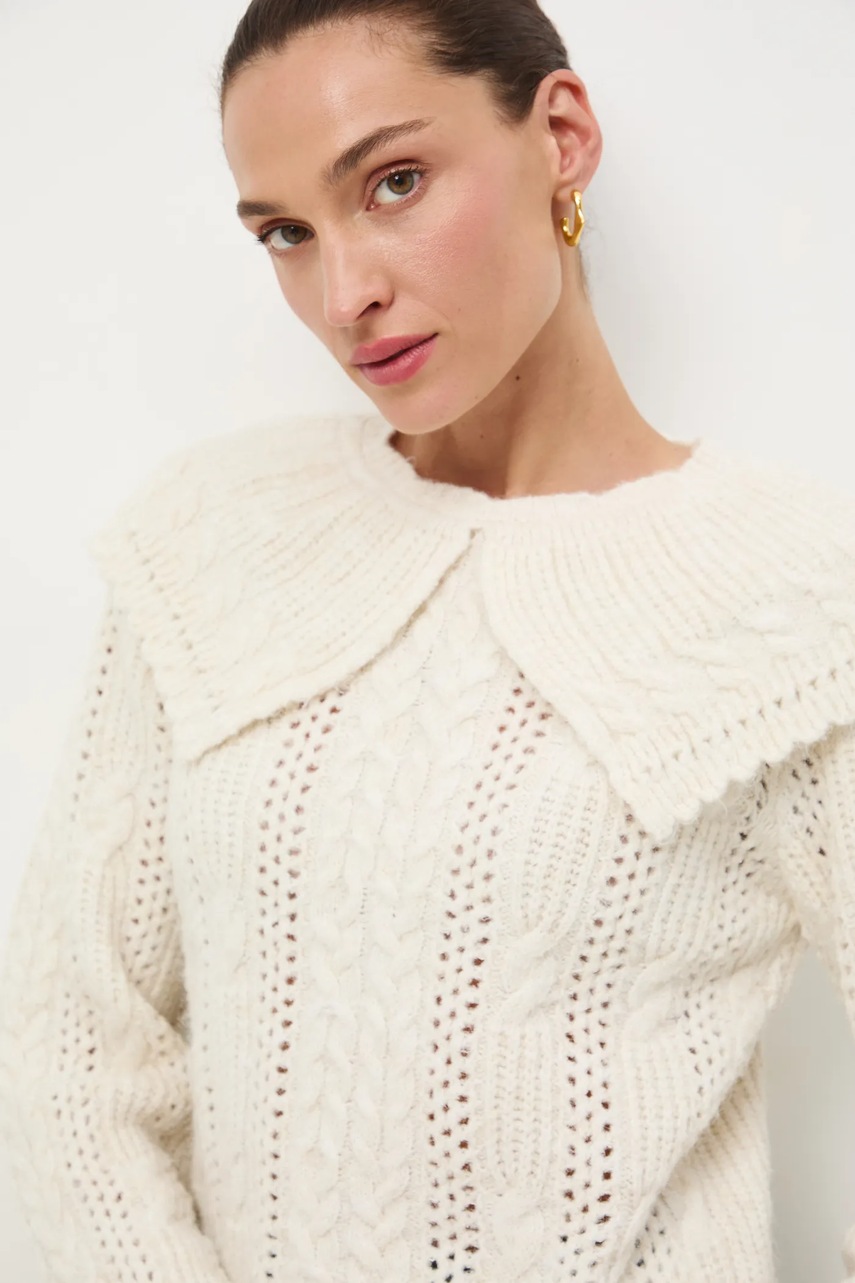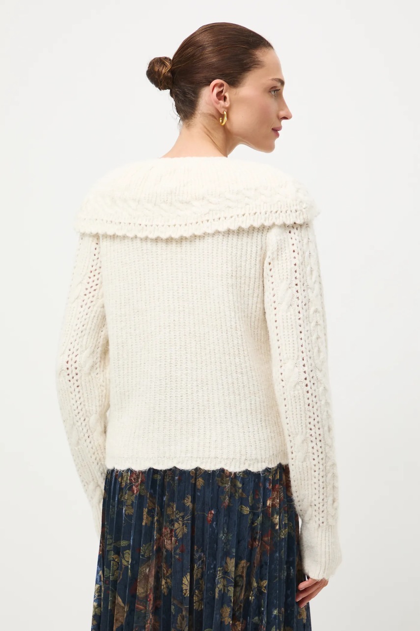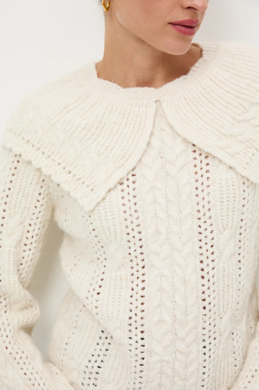 - Sweter w fasonie slim jest dopasowany do ciała i naturalnie podkreśla sylwetkę. Odpowiedni do eleganckich, jak i casualowych stylizacji. - Długi rękaw. - Model z kołnierzem. - Model wykonany z ażurowego materiału. - Ozdobne wykończenia. - Dzianina średniej grubości. - Długość rękawa: 64,5 cm. - Długość: 56 cm. - Szerokość w biuście: 45 cm. - Wymiary podane dla rozmiaru: S.