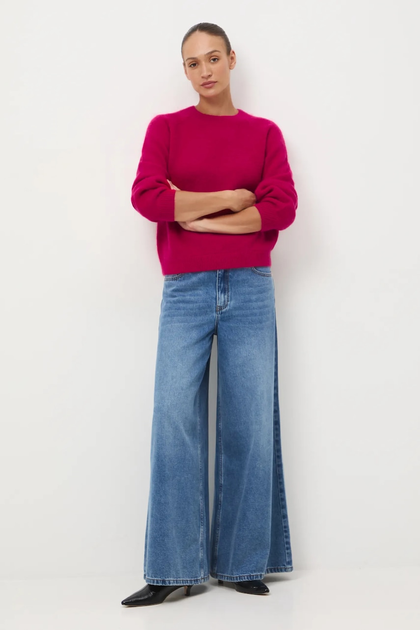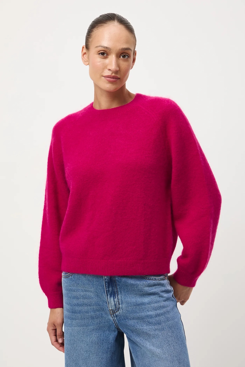 - Sweter w fasonie oversize zapewnia komfort i swobodę ruchów. Pasuje do różnych stylów, podkreślając casualowy charakter stylizacji. - Długi, raglanowy rękaw. - Okrągły dekolt. - Wykończenie ze ściągacza. - Melanżowa dzianina. - Model wykonany z dzianiny z moherem i wełną. - Długość rękawa(mierzona od dekoltu): 73 cm. - Długość: 58,5 cm. - Szerokość w biuście: 56 cm. - Wymiary podane dla rozmiaru: S.