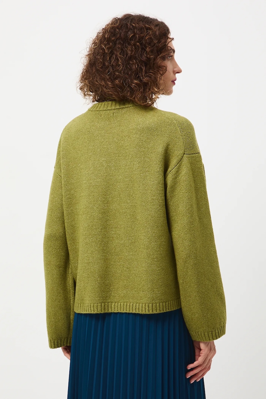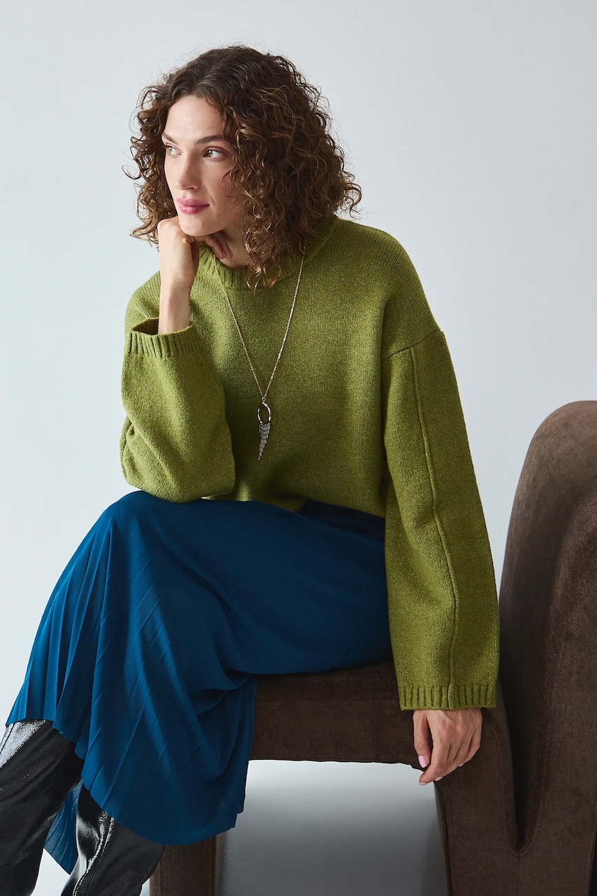 - Fason regular. - Długi rękaw. - Obniżona linia ramion. - Okrągły dekolt. - Wykończenie ze ściągacza. - Ozdobne przeszycia. - Melanżowa dzianina. - Długość rękawa(mierzona od dekoltu): 71 cm. - Długość: 60,5 cm. - Szerokość w biuście: 54 cm. - Wymiary podane dla rozmiaru: S.
