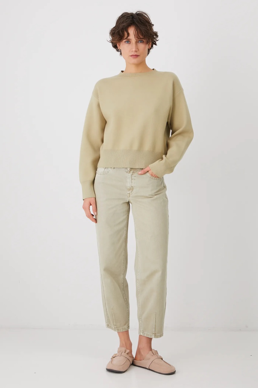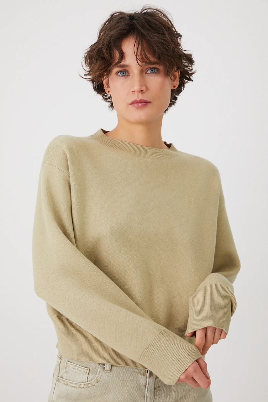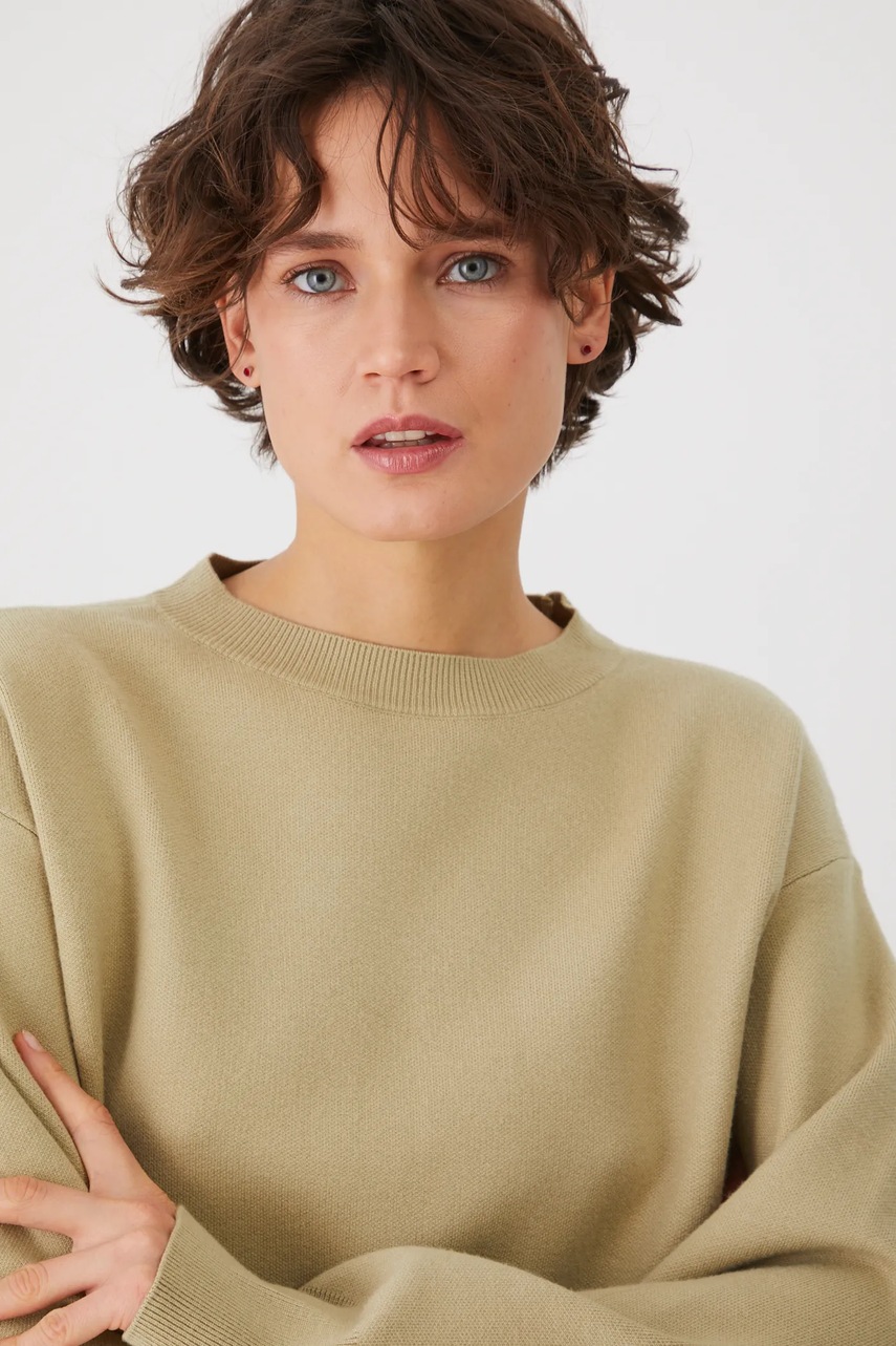 - Fason regular. - Długi rękaw. - Obniżona linia ramion. - Okrągły dekolt. - Wykończenie ze ściągacza. - Gładka dzianina. - Długość rękawa(mierzona od dekoltu): 70 cm. - Długość: 55 cm. - Szerokość w biuście: 55 cm. - Wymiary podane dla rozmiaru: S.