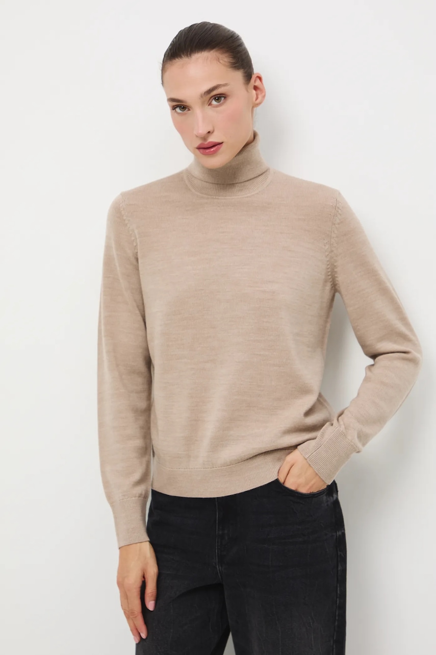Medicine sweter z wełny merino kolor beżowy z golfem