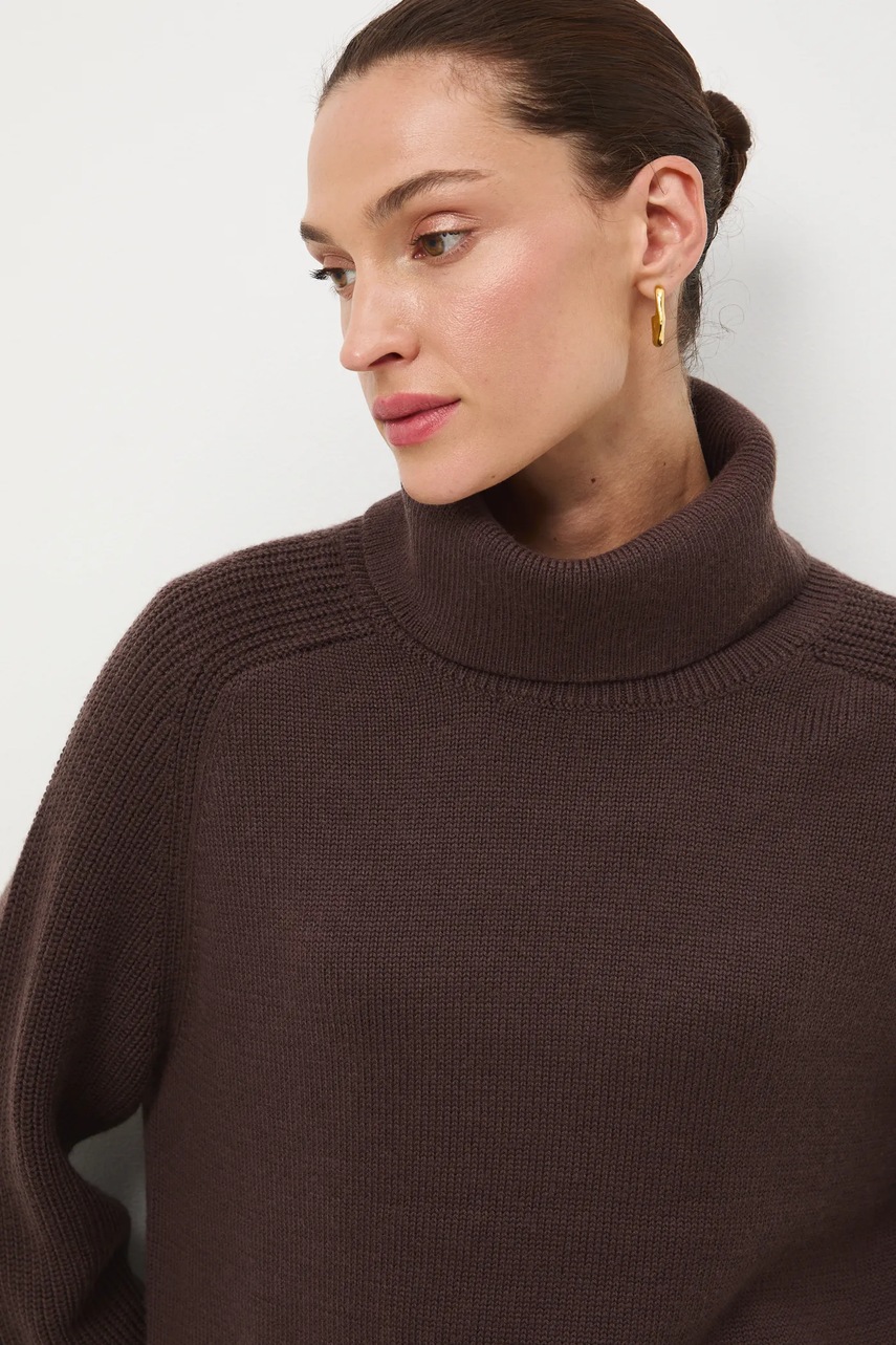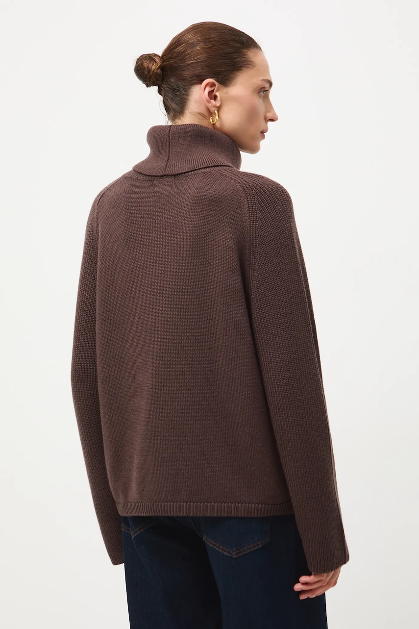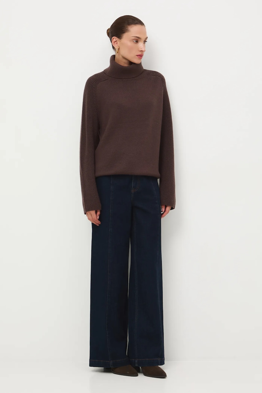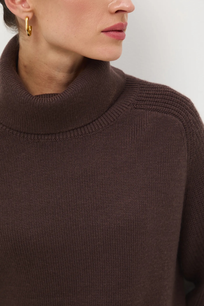 Medicine sweter z wełny merino kolor brązowy z golfem