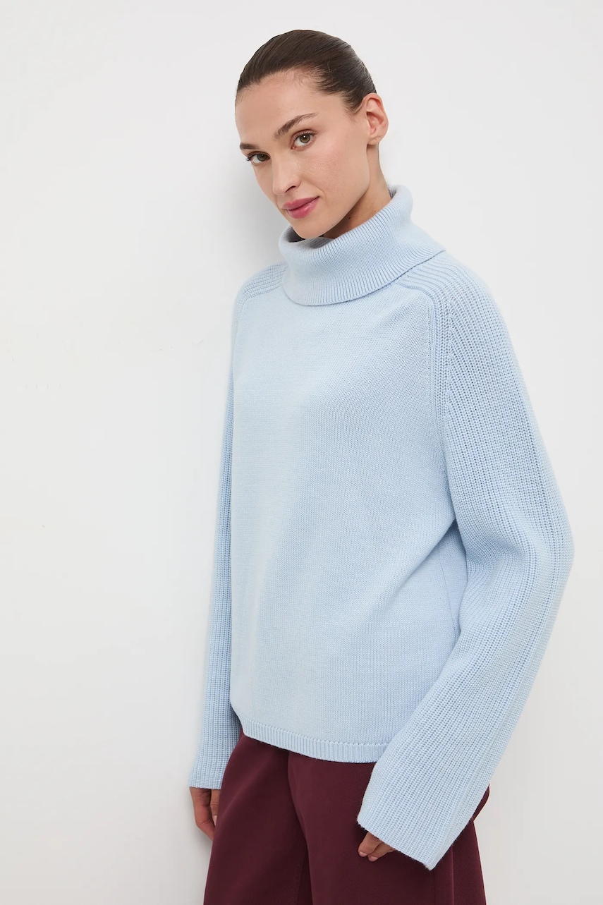 Medicine sweter z wełny merino kolor niebieski z golfem