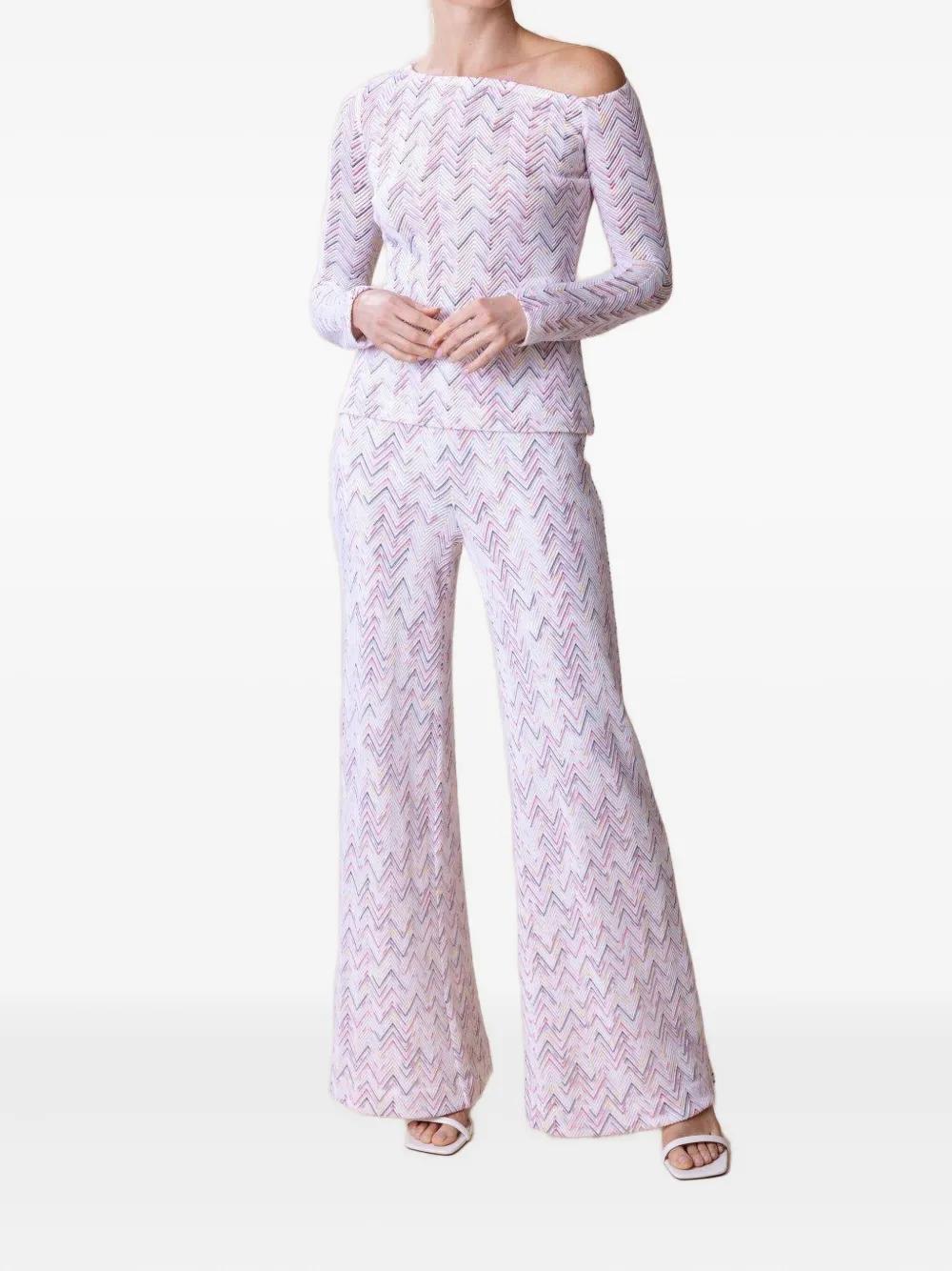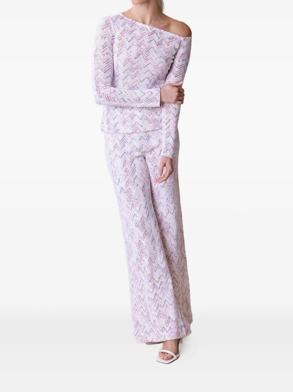 white chevron pattern off-shoulder neckline long sleeves The item you receive may differ slightly from the item photographed. This is due to the artisanal nature with which all Missoni products are constructed.