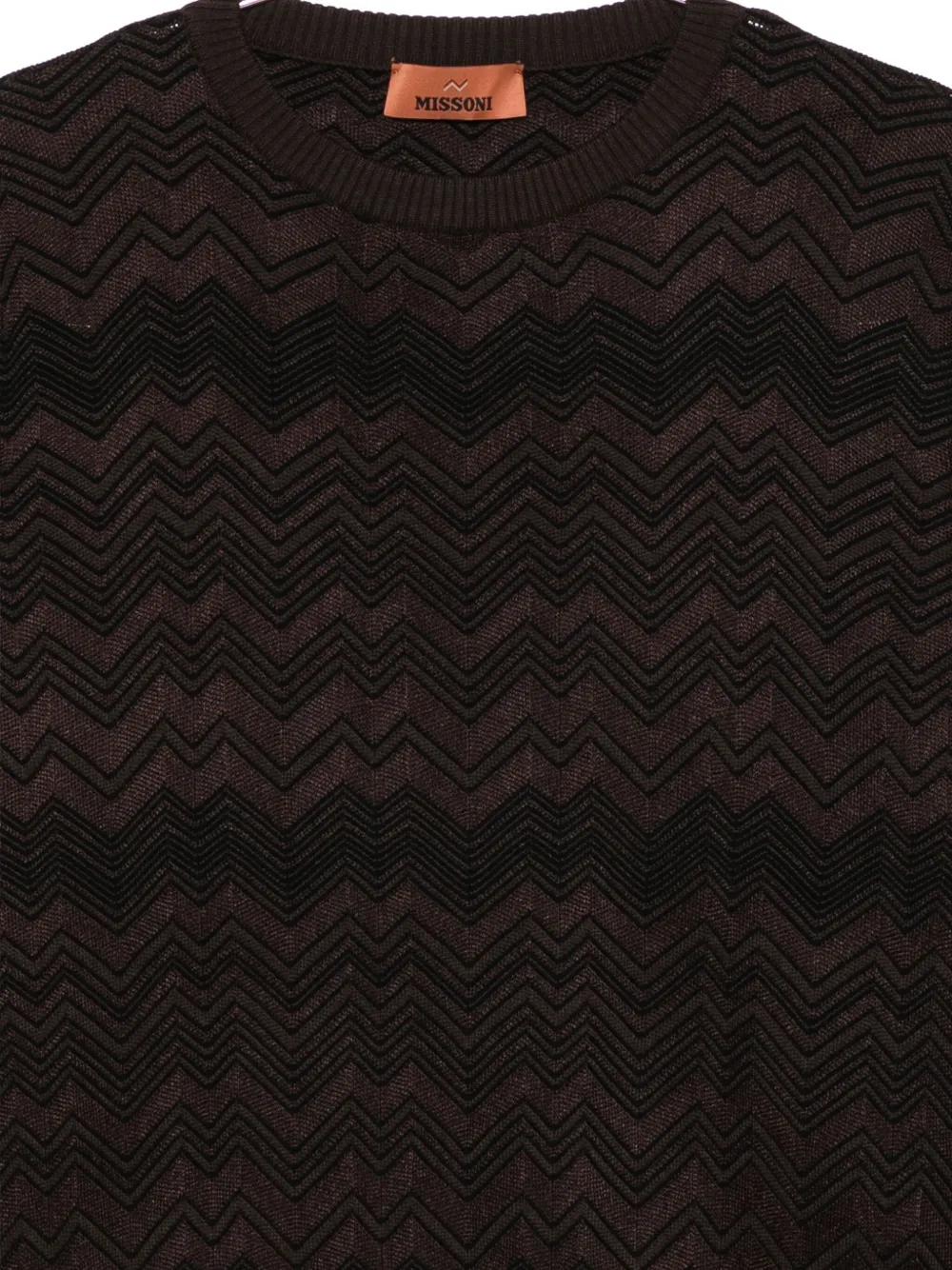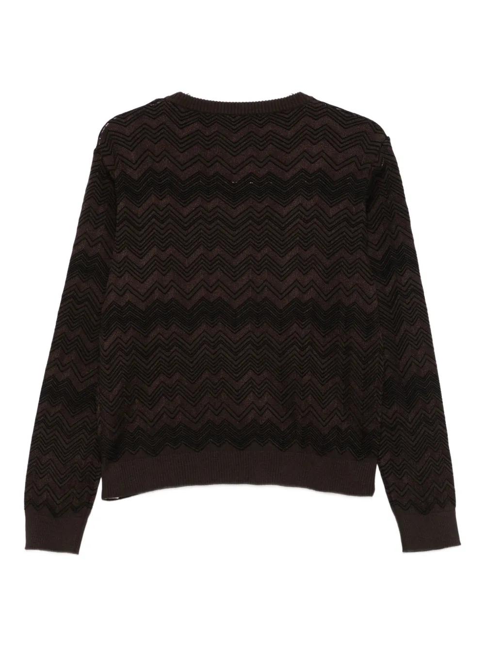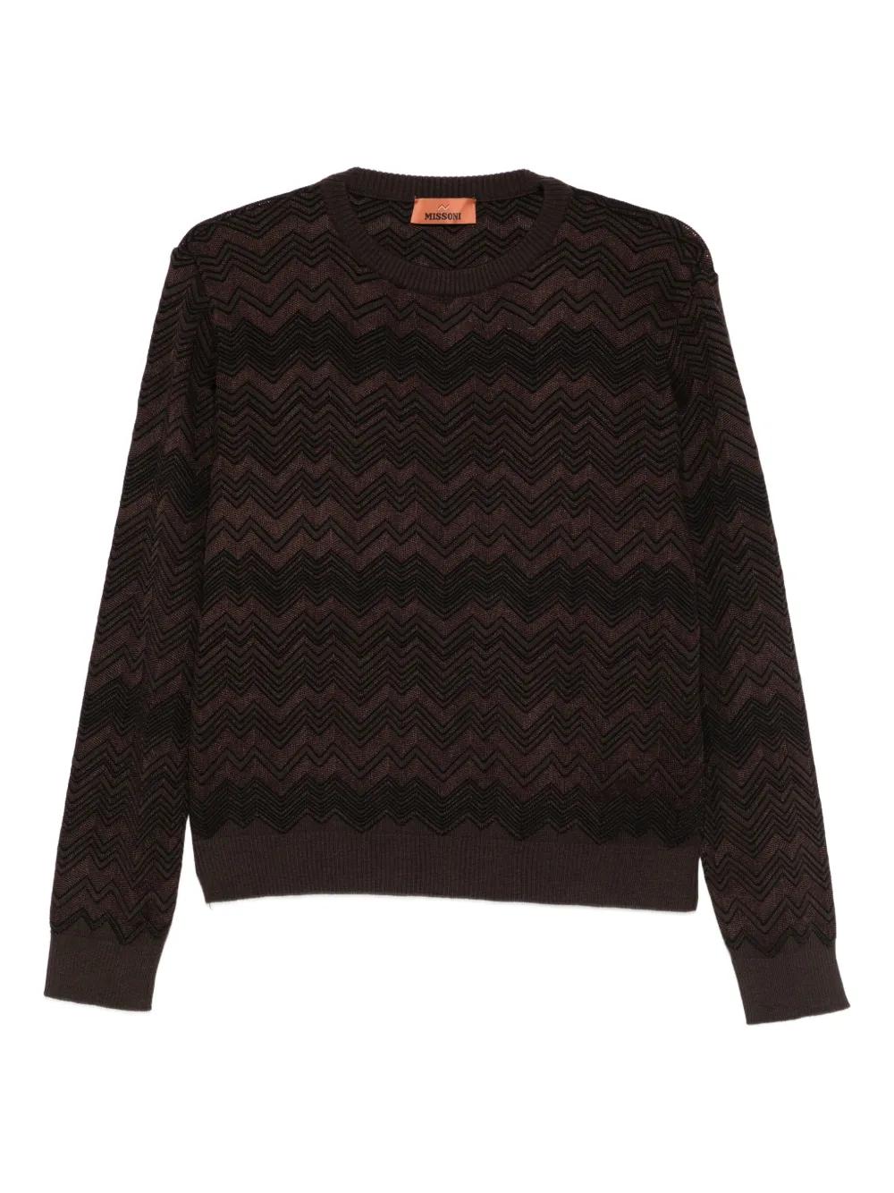 brown chevron pattern crew neck long sleeves ribbed hem ribbed cuffs The item you receive may differ slightly from the item photographed. This is due to the artisanal nature with which all Missoni products are constructed.