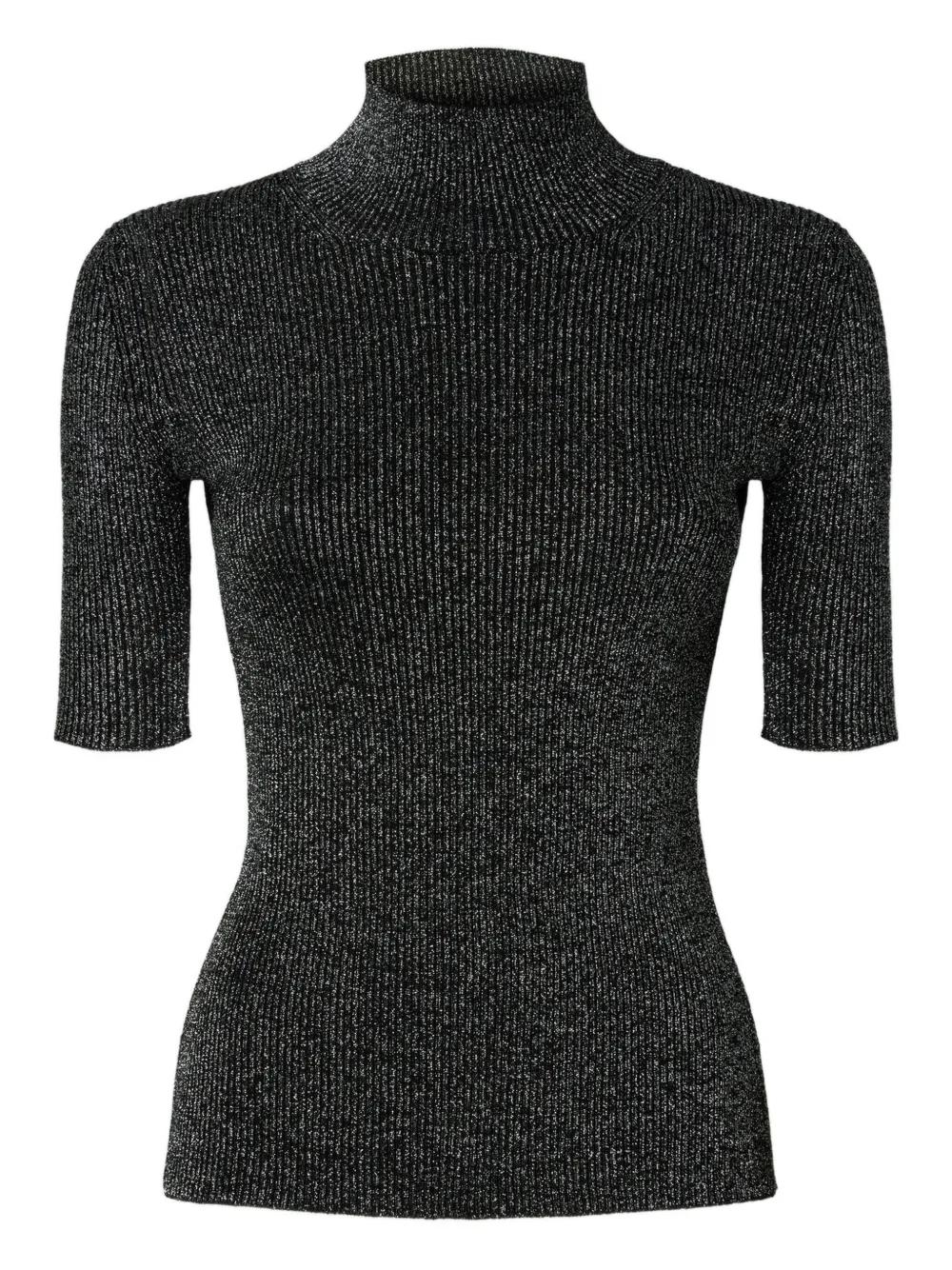 black metallic effect ribbed texture mock neck short sleeves The item you receive may differ slightly from the item photographed. This is due to the artisanal nature with which all Missoni products are constructed.
