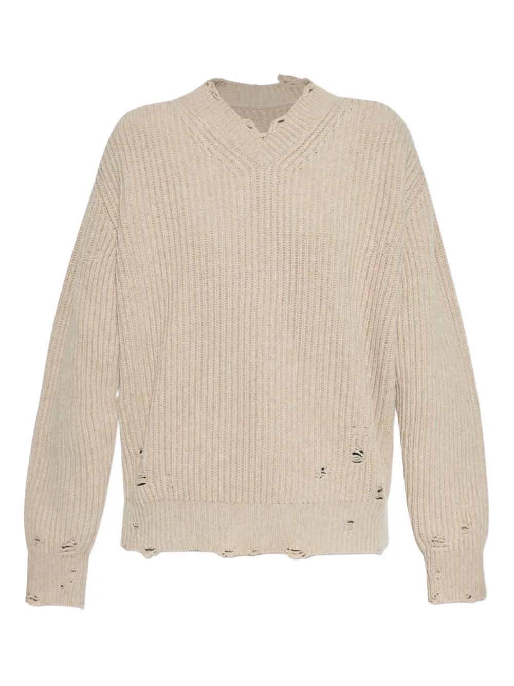 MM6 Maison Margiela distressed ribbed sweater - Neutrals