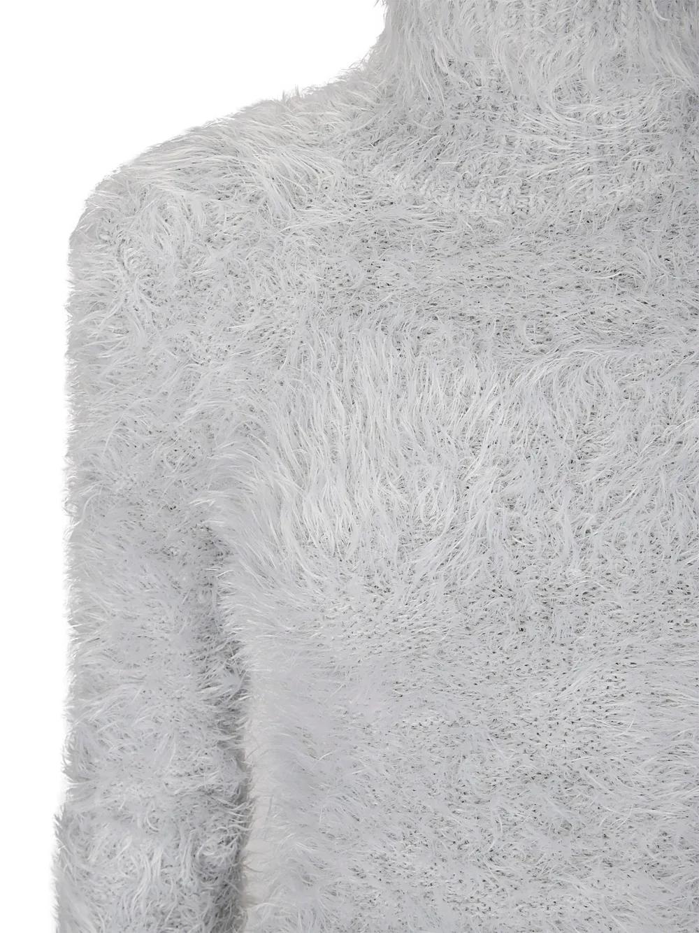 light grey high neck long sleeves fluffy texture ribbed hem