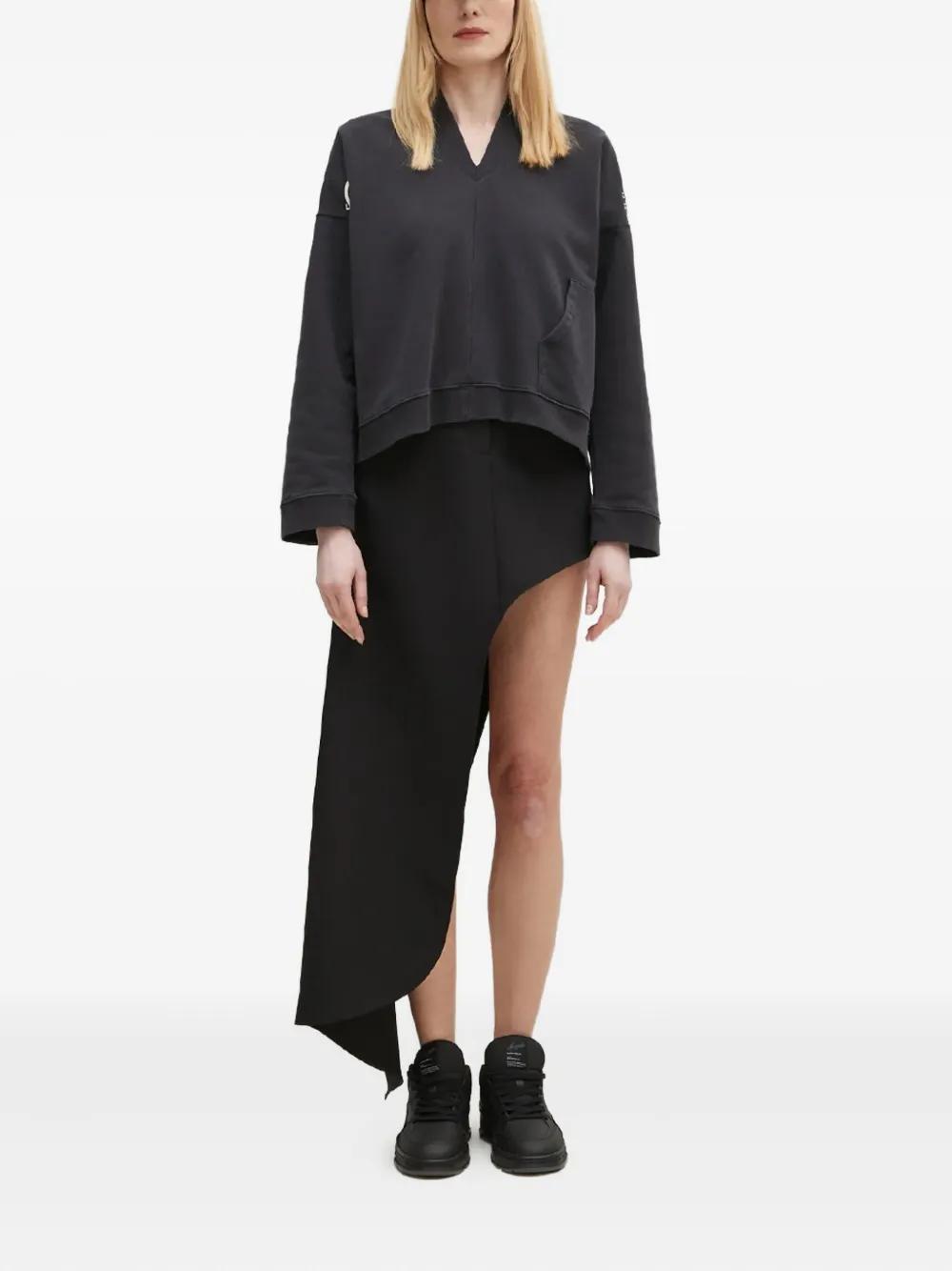 charcoal grey V-neck dropped shoulders long sleeves kangaroo pocket asymmetric design