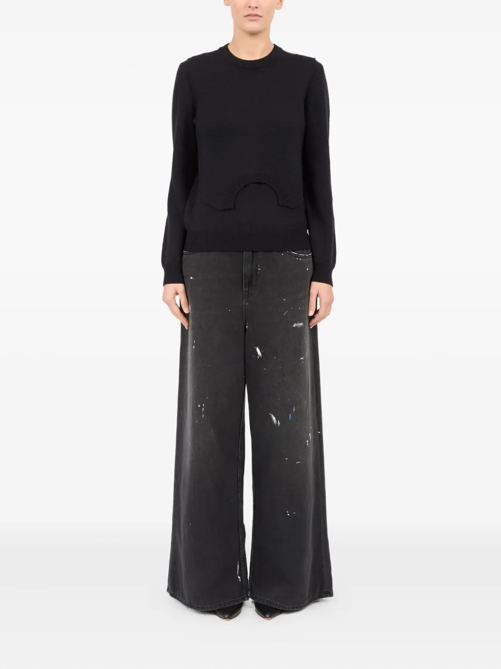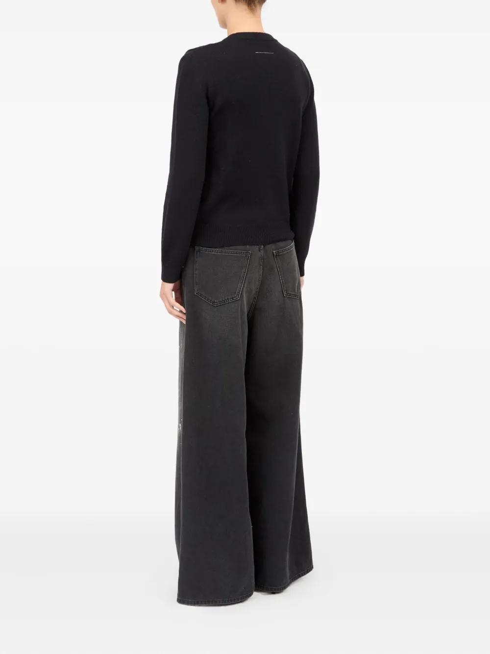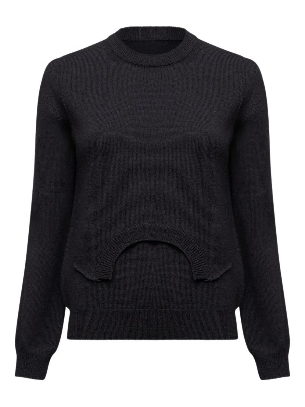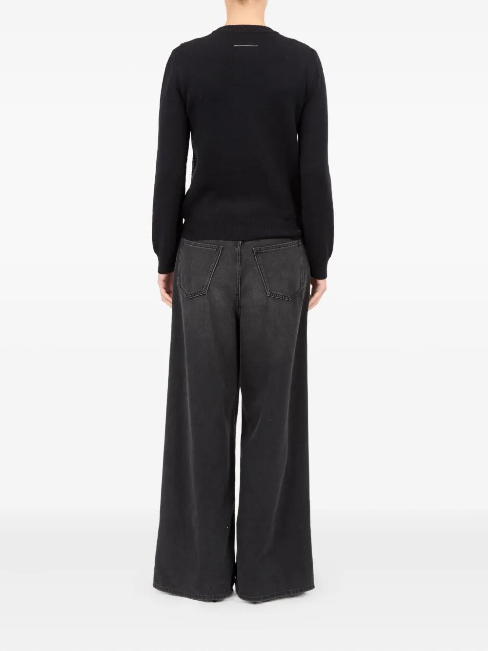 black round neck long sleeves single-stitch logo ribbed cuffs and hem