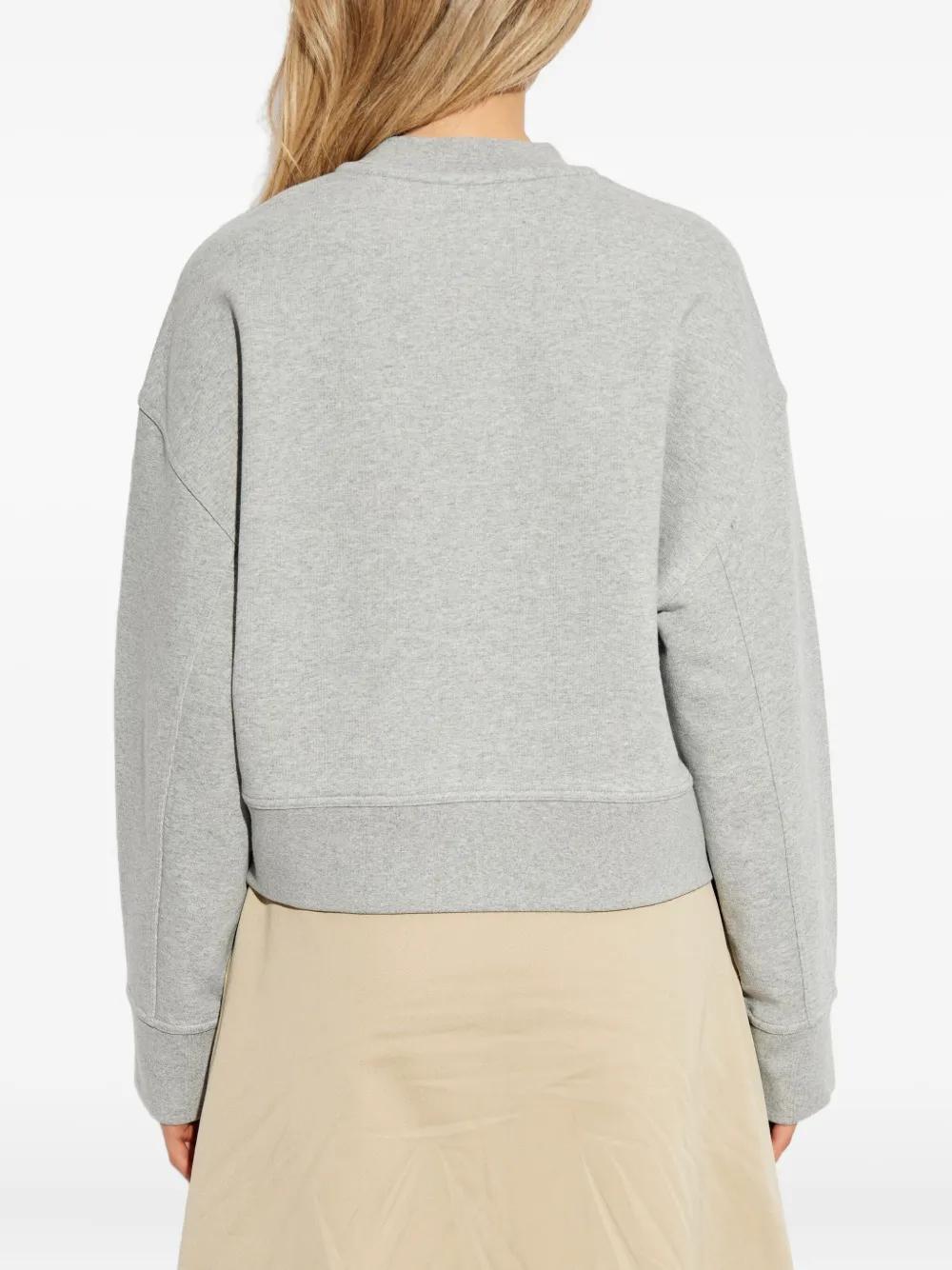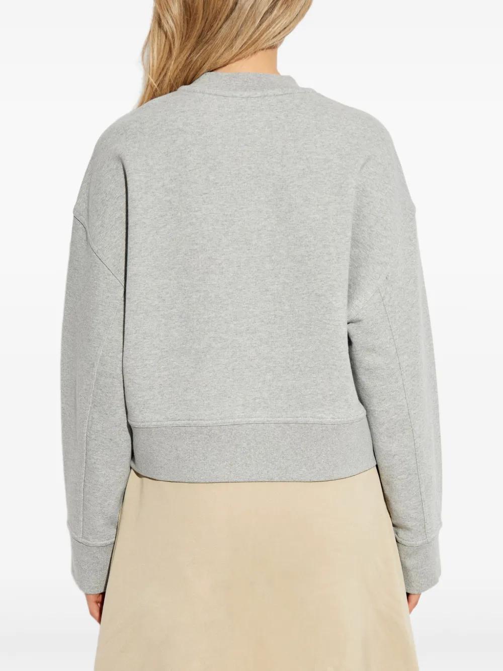grey embroidered detail round neck long sleeves ribbed hem ribbed cuffs