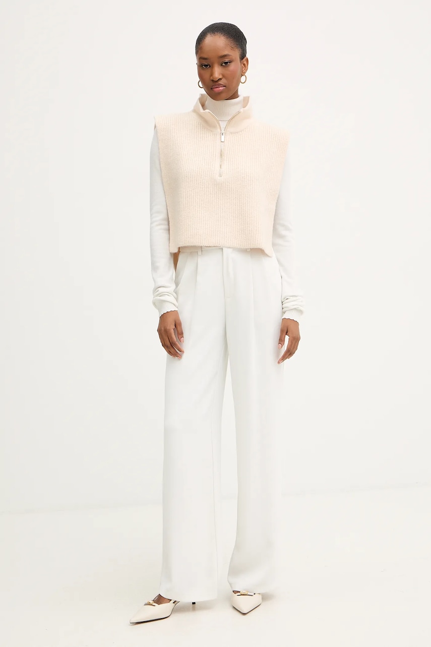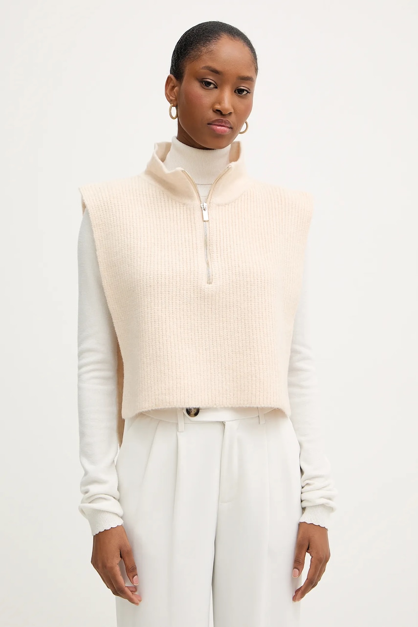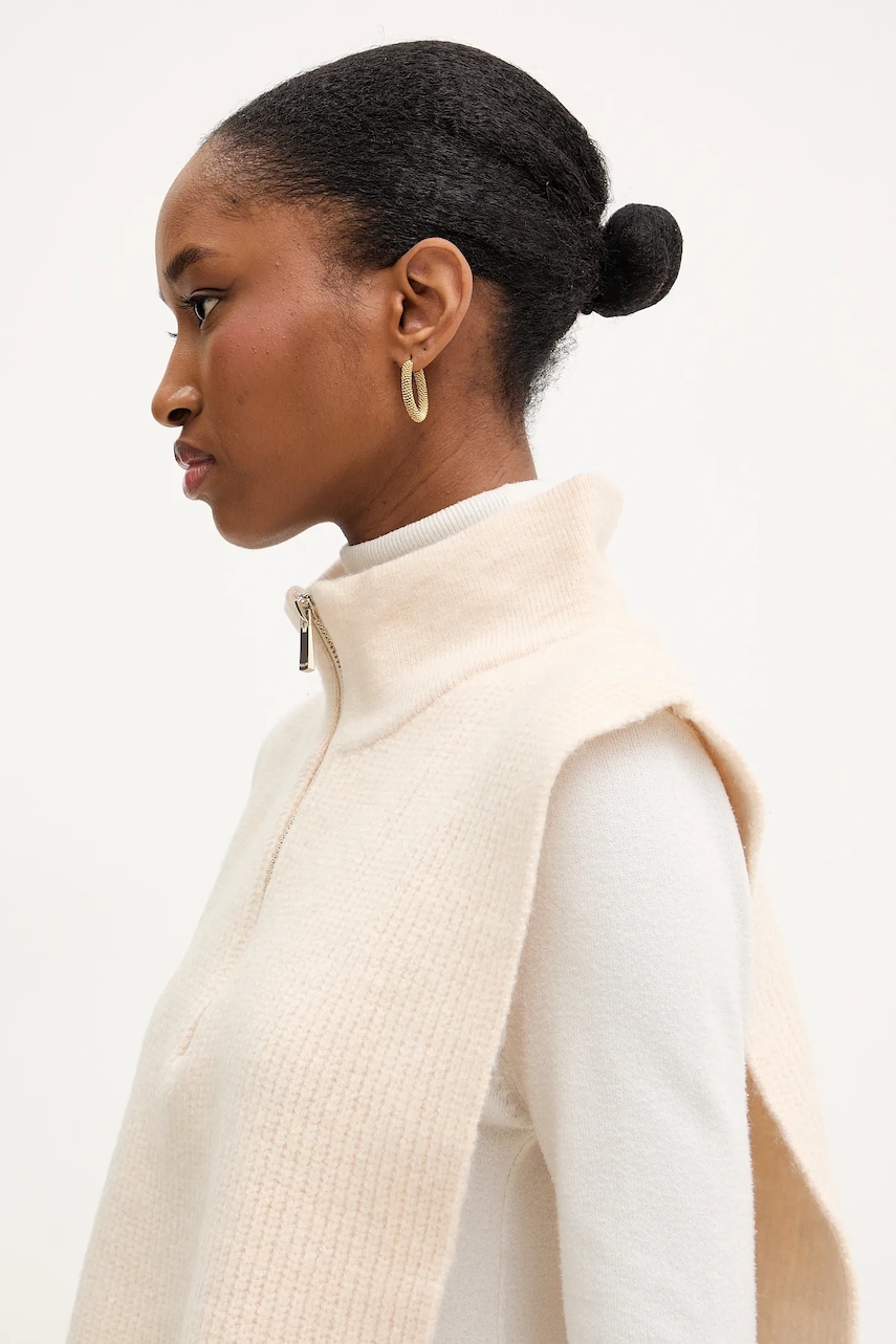 Morgan kamizelka damski kolor beżowy z półgolfem 5COLA