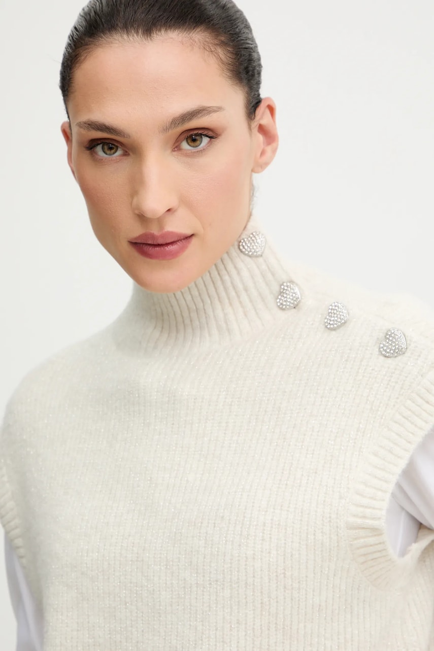 Morgan kamizelka z domieszką wełny damski kolor beżowy z półgolfem MSARA