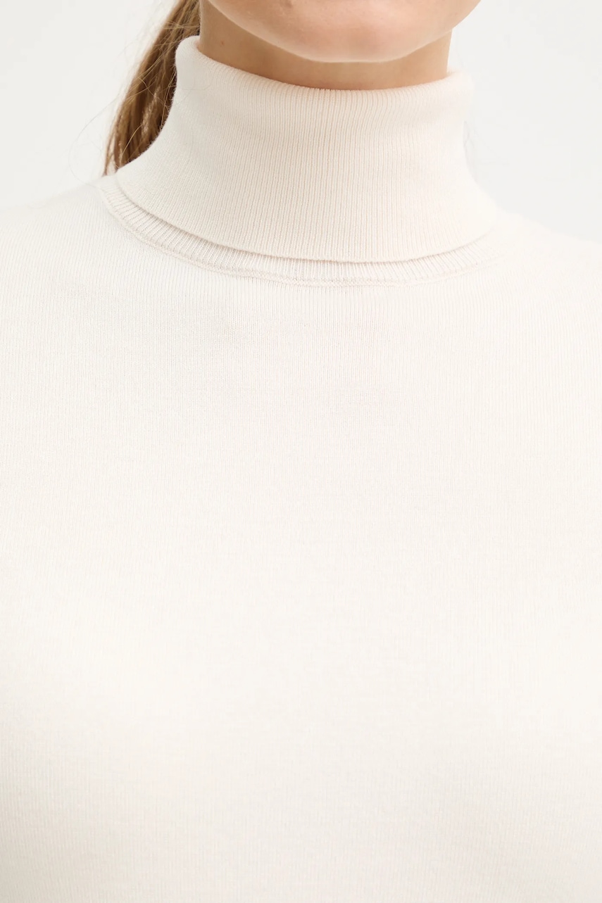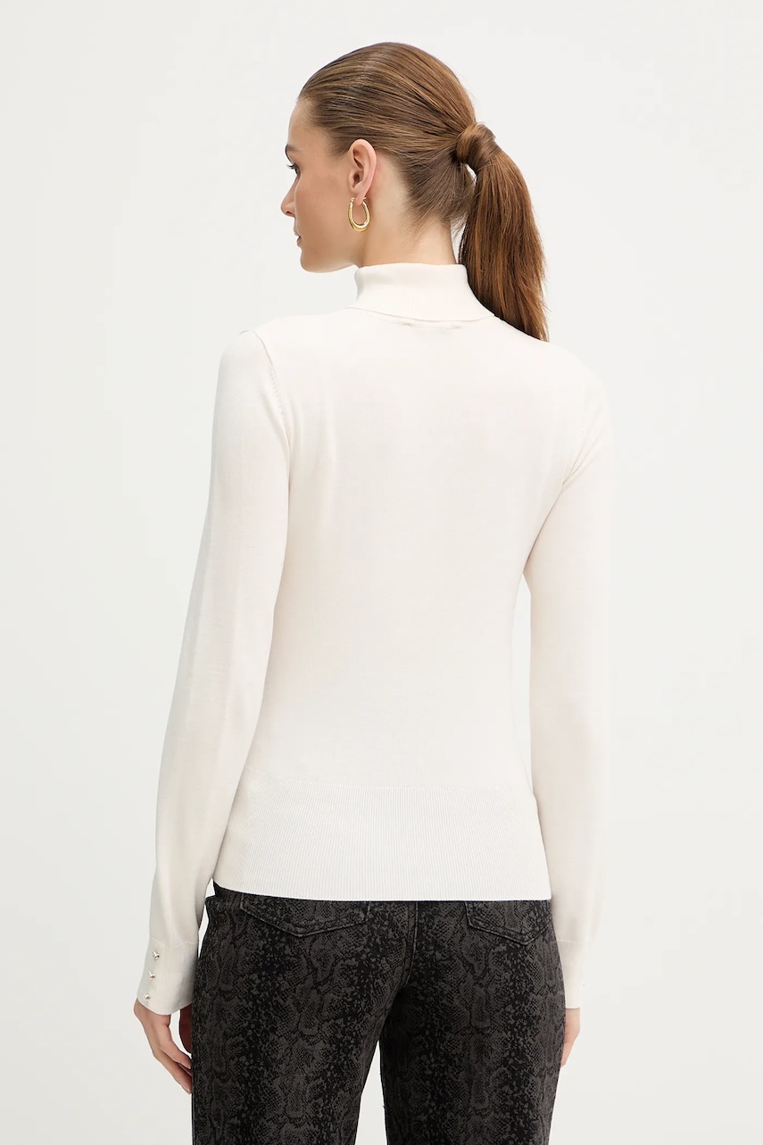 Morgan sweter damski kolor beżowy lekki z golfem MFLORIA