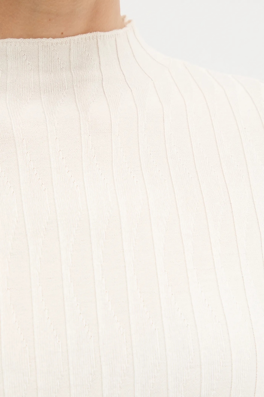 - Wykonane z LENZING™ ECOVERO™ - materiału przyjaznego środowisku. Produkcja LENZING™ ECOVERO™ z ekologicznej celulozy i pulpy drzewnej wykorzystuje o 50% mniej wody w porównaniu do popularnej wiskozy. - Dopasowany fason nie krępujący ruchów. - Model z półgolfem. - Długie, dopasowane rękawy. - Dolna krawędź wykończona wygodnym, elastycznym ściągaczem. - Cienka, elastyczna dzianina. - Długość rękawa: 67,5 cm. - Długość: 59,5 cm. - Szerokość pod pachami: 39 cm. - Wymiary podane dla rozmiaru: S.