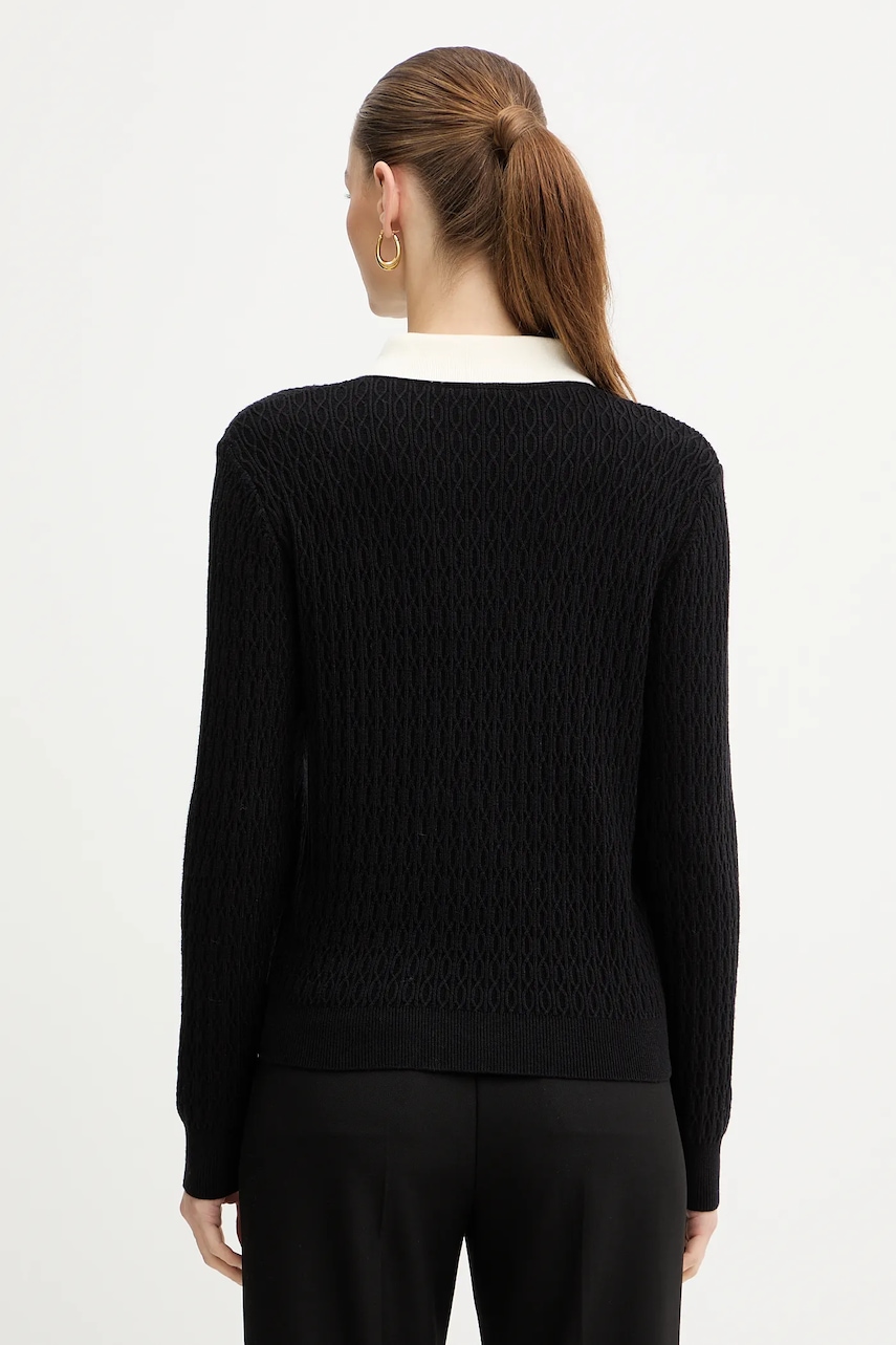 - Produkt częściowo wykonany z LENZING™ ECOVERO™ - materiału przyjaznego środowisku. Produkcja LENZING™ ECOVERO™ z ekologicznej celulozy i pulpy drzewnej wykorzystuje o 50% mniej wody w porównaniu do popularnej wiskozy. - Prosty, nie blokujący ruchów fason. - Ozdobne detale. - Model z kołnierzykiem. - Rękawy i dolna krawędź wykończone wygodnym, elastycznym ściągaczem. - Efektowny splot. - Długość rękawa: 62 cm. - Długość: 55 cm. - Szerokość pod pachami: 45 cm. - Wymiary podane dla rozmiaru: S.