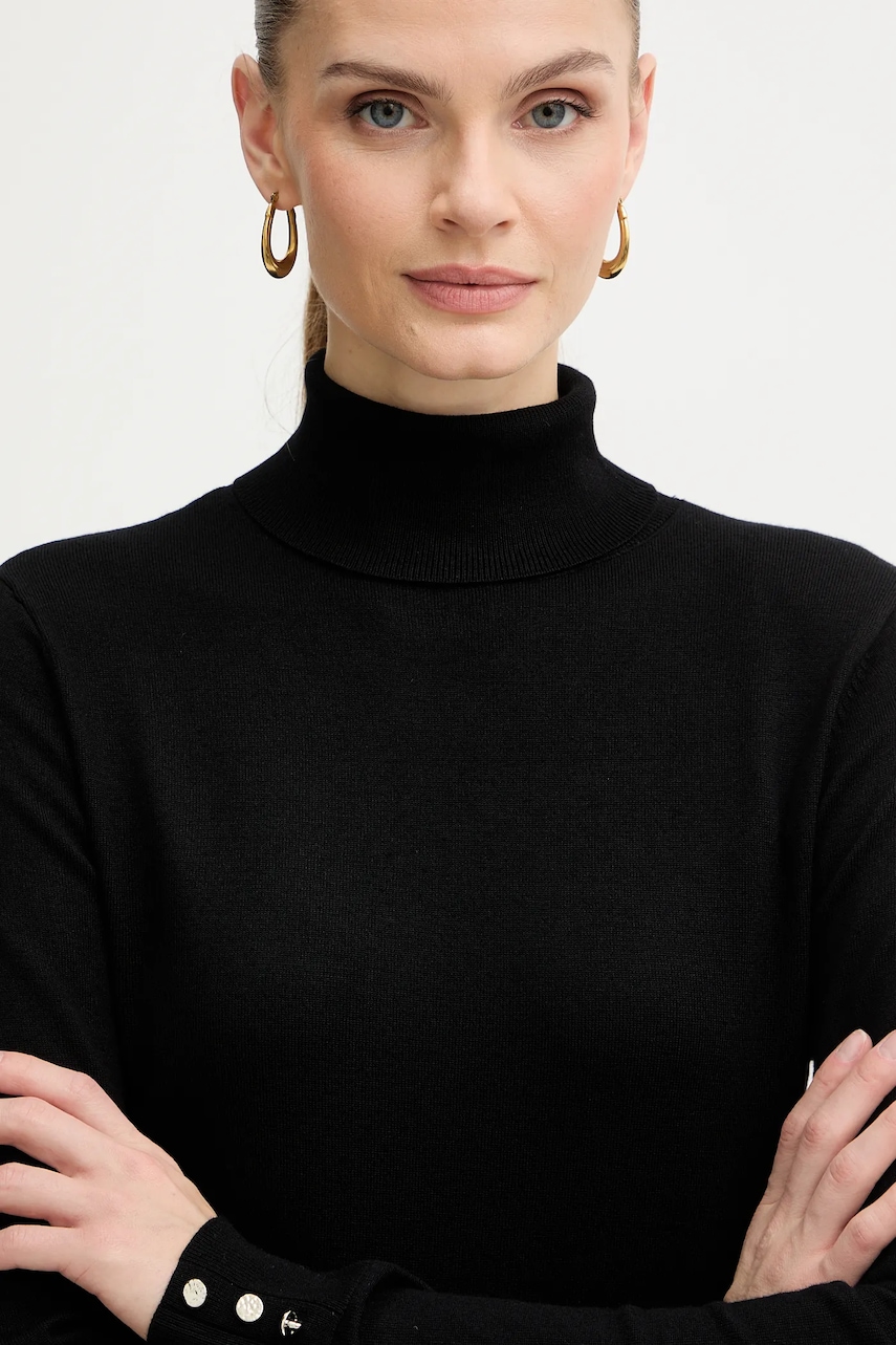 Morgan sweter damski kolor czarny lekki z golfem MFLORIA