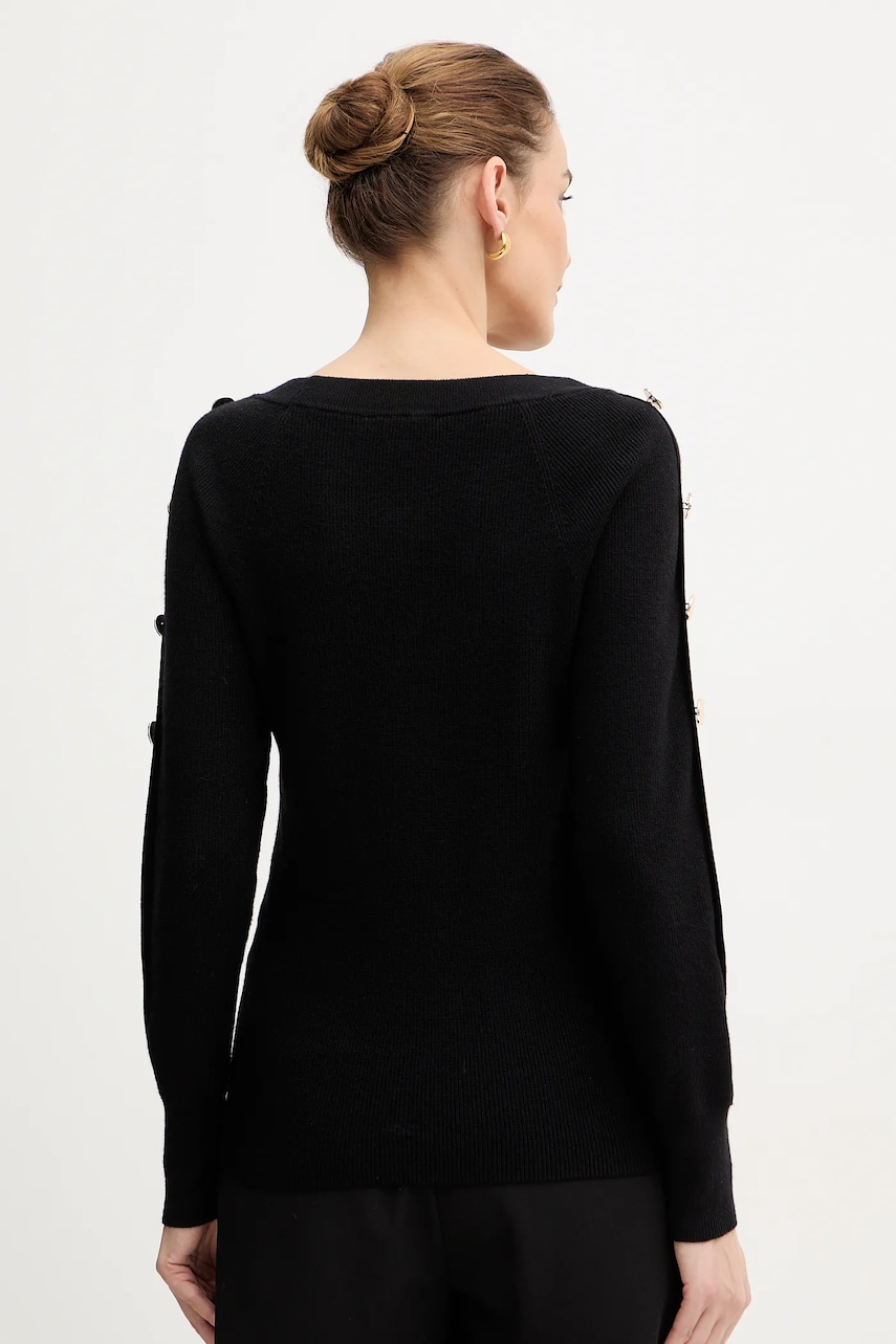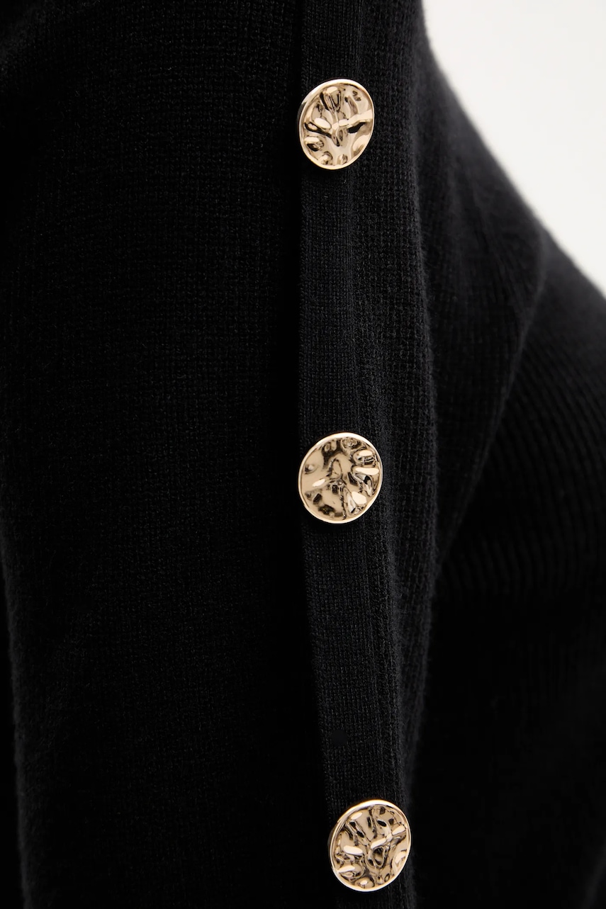 - Prosty, nie blokujący ruchów fason. - Klasyczny, okrągły dekolt. - Rękaw raglanowy, dzięki swojej konstrukcji, zapewnia większą swobodę ruchu. - Rękawy i dolna krawędź wykończone wygodnym, elastycznym ściągaczem. - Dzianina średniej grubości. - Ozdobne guziki przy rękawach. - Długość rękawa(mierzona od dekoltu): 75 cm. - Długość: 64,5 cm. - Szerokość pod pachami: 43 cm. - Wymiary podane dla rozmiaru: S.