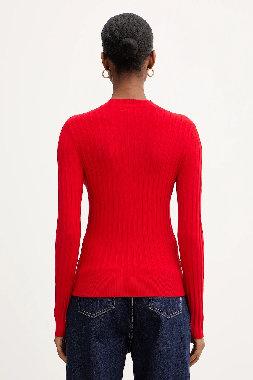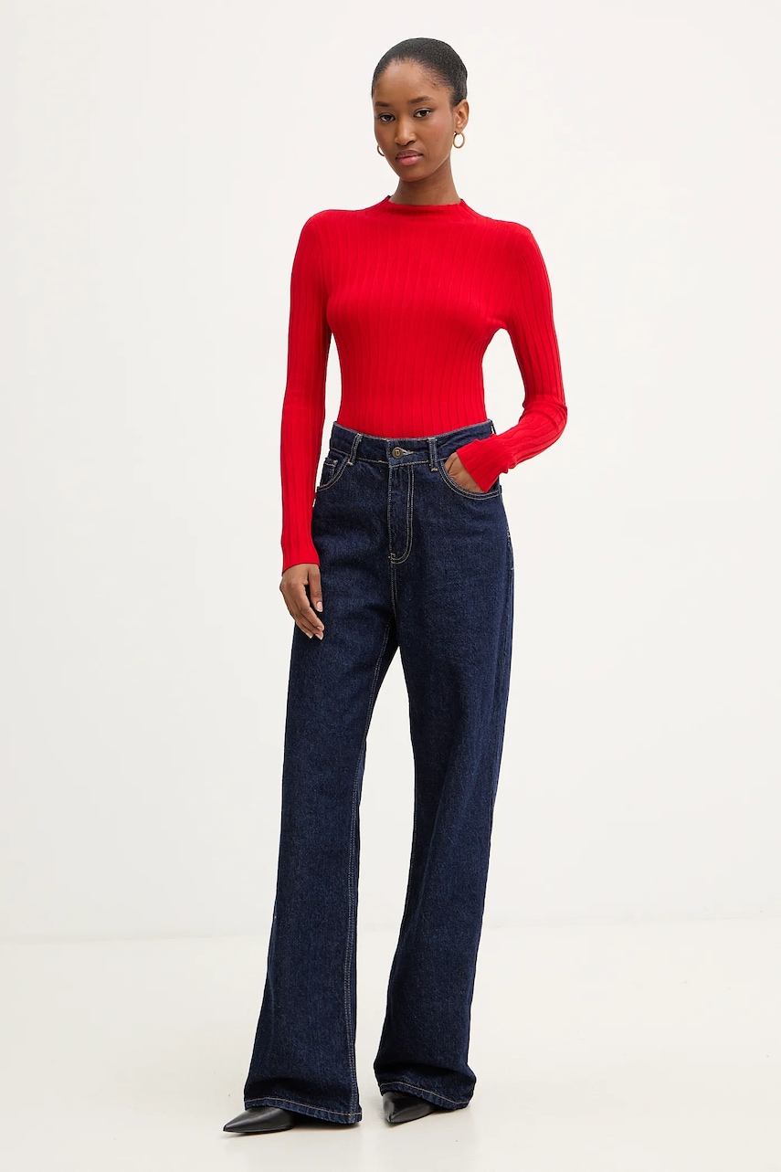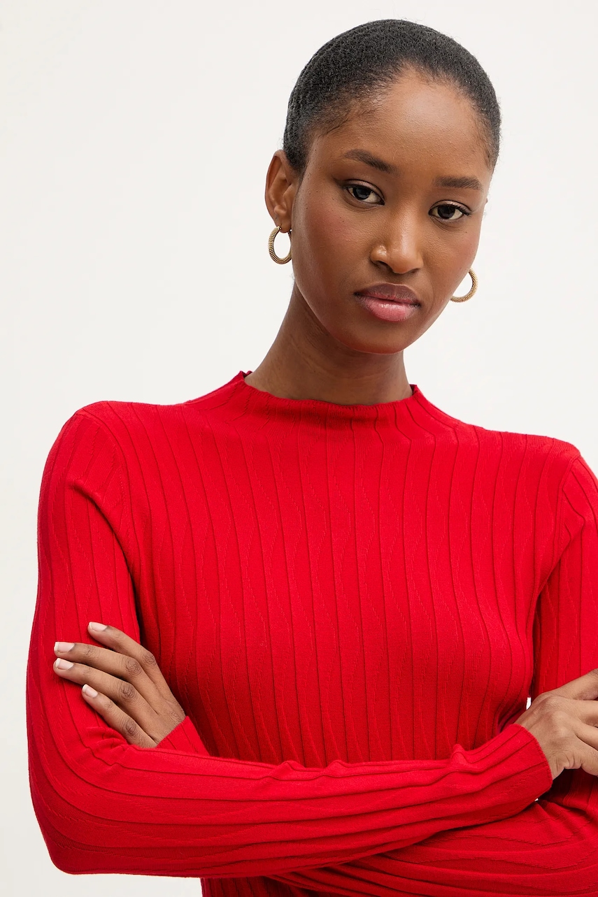 Morgan sweter damski kolor czerwony lekki z półgolfem MROYA