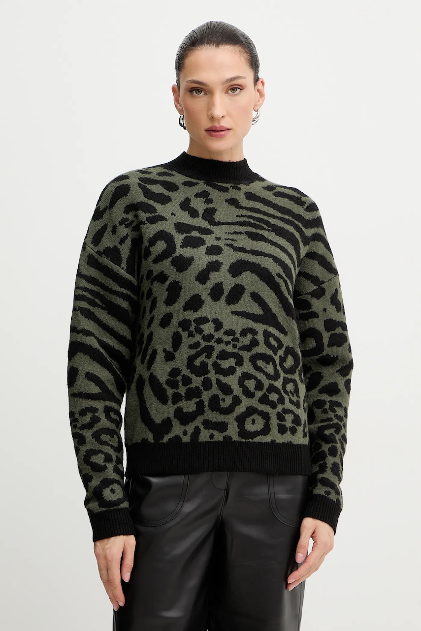 Morgan sweter damski kolor zielony z półgolfem MFELIXA