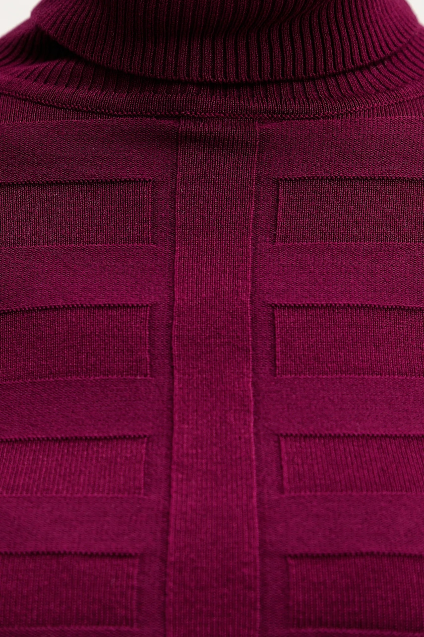 - Produkt częściowo wykonany z LENZING™ ECOVERO™ - materiału przyjaznego środowisku. Produkcja LENZING™ ECOVERO™ z ekologicznej celulozy i pulpy drzewnej wykorzystuje o 50% mniej wody w porównaniu do popularnej wiskozy. - Dopasowany, podkreślający sylwetkę fason. - Model z golfem. - Długi rękaw. - Rękawy i dolna krawędź zakończona ściągaczami chroniącymi przed niekorzystnymi warunkami atmosferycznymi. - Dzianina średniej grubości. - Długość rękawa: 62 cm. - Długość: 62 cm. - Szerokość pod pachami: 38 cm. - Wymiary podane dla rozmiaru: S.