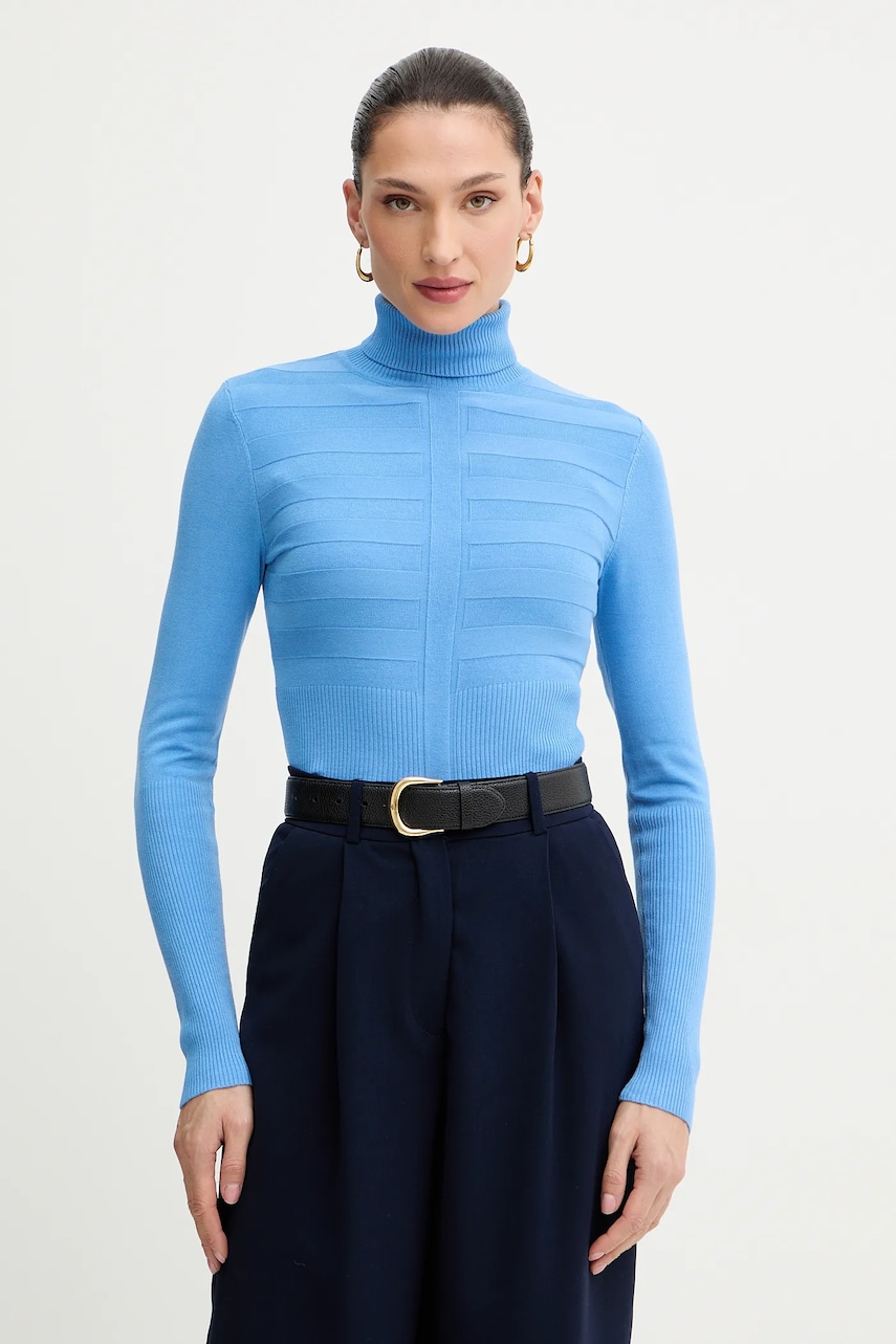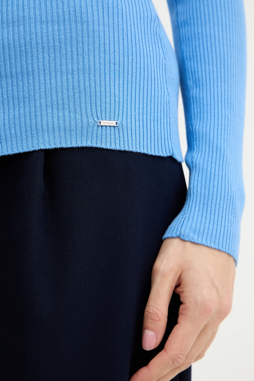 Morgan sweter MENTOS.M damski kolor niebieski z golfem MENTOS.M