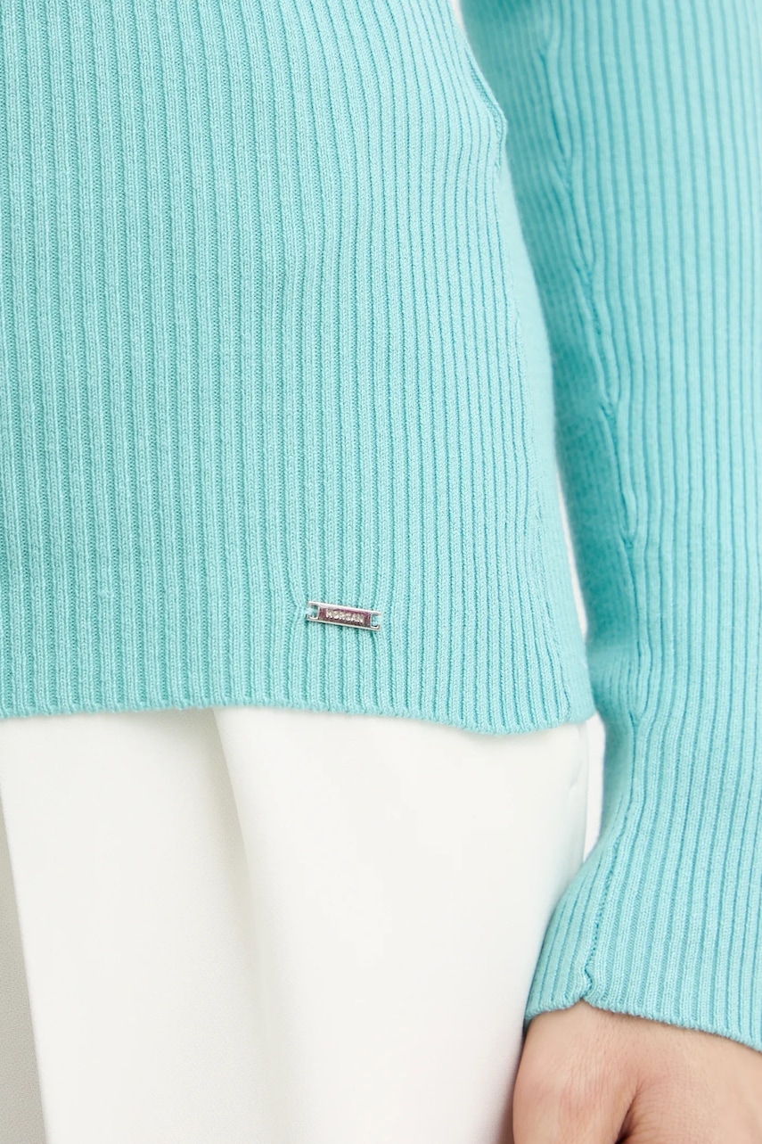 Morgan sweter MENTOS.M damski kolor turkusowy z golfem MENTOS.M