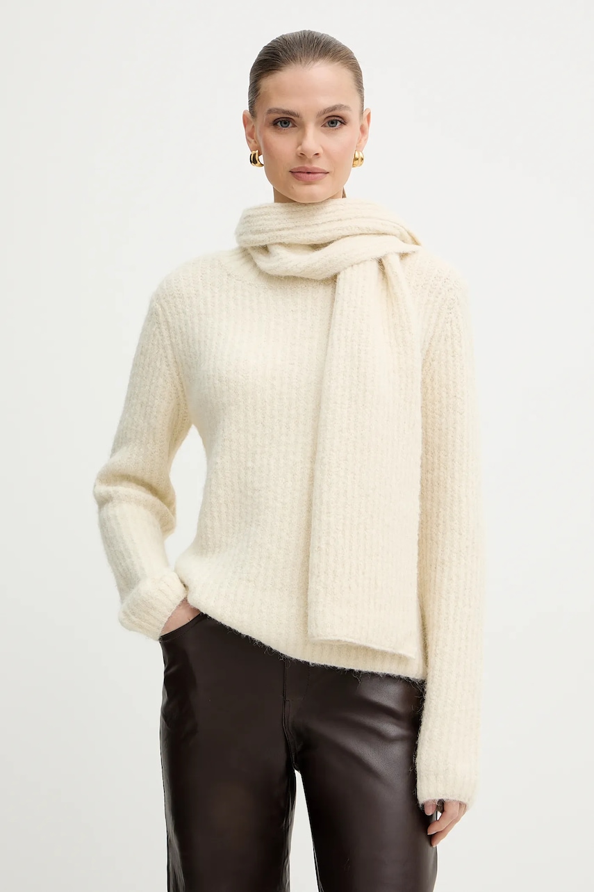 Morgan sweter z dodatkiem wełny damski kolor beżowy ciepły MACHA