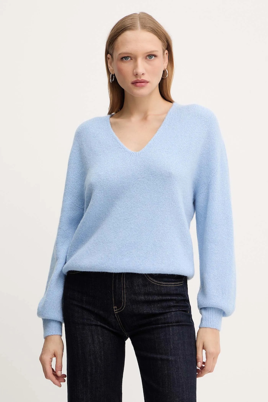 Morgan sweter z dodatkiem wełny damski kolor niebieski MVALI