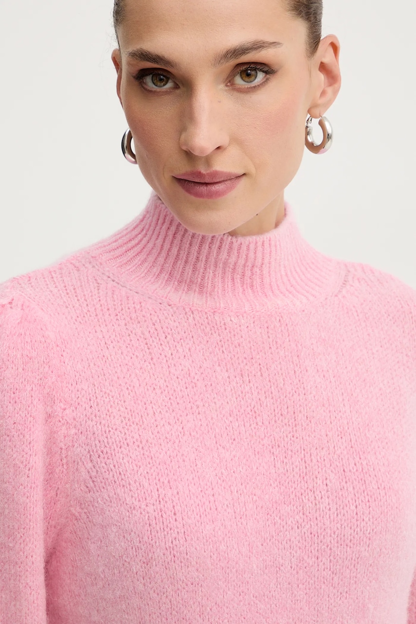 Morgan sweter z dodatkiem wełny damski kolor różowy z golfem MLEONAR