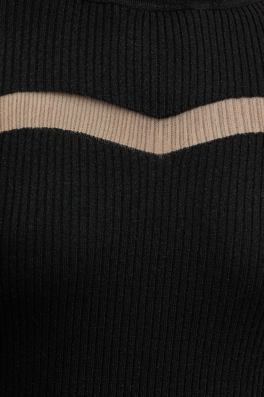 - Produkt zawiera materiały z włókien pochodzących z recyklingu. - Dopasowany fason nie krępujący ruchów. - Model z półgolfem. - Prążkowana dzianina. - Materiał z metaliczną nicią. - Długość rękawa: 61 cm. - Długość: 61 cm. - Szerokość pod pachami: 39 cm. - Wymiary podane dla rozmiaru: S.