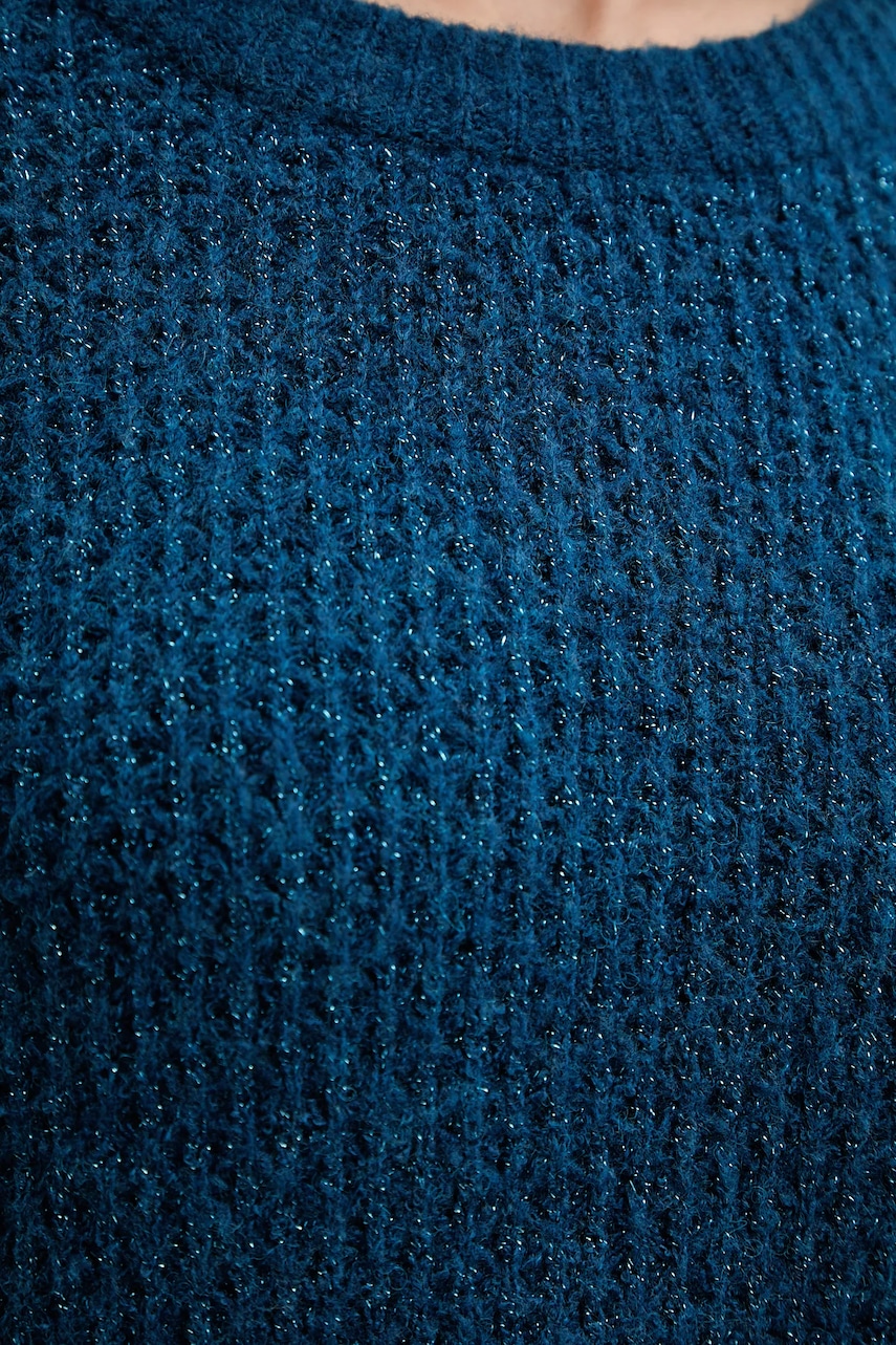 - Ten model został częściowo wykonany z poliestru z recyklingu. - Prosty, nie blokujący ruchów fason. - Klasyczny, okrągły dekolt. - Produkt zawiera materiały z włókien pochodzących z recyklingu. - Dzianina średniej grubości. - Długość rękawa: 60 cm. - Długość: 56 cm. - Szerokość pod pachami: 51 cm. - Wymiary podane dla rozmiaru: S.