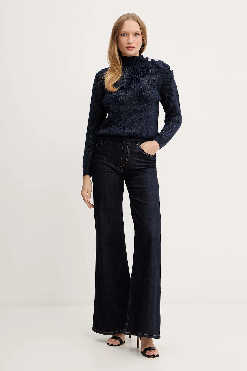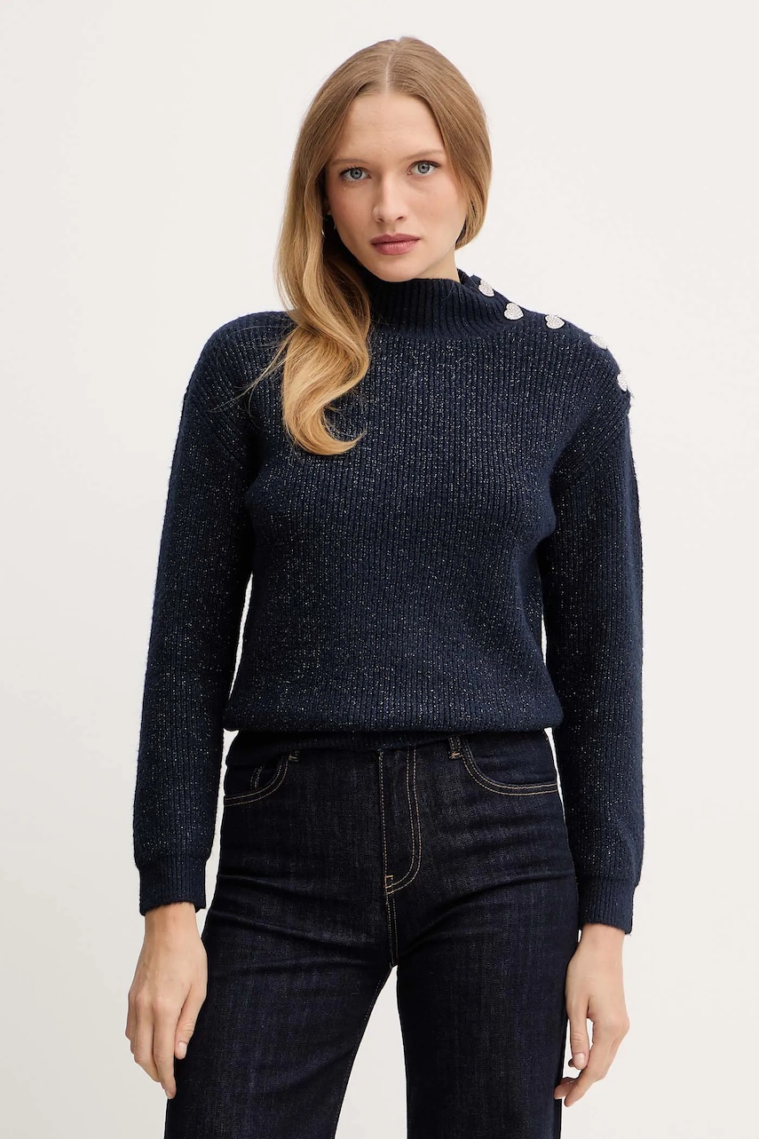 Morgan sweter z domieszką wełny MSTORI damski kolor granatowy z półgolfem MSTORI