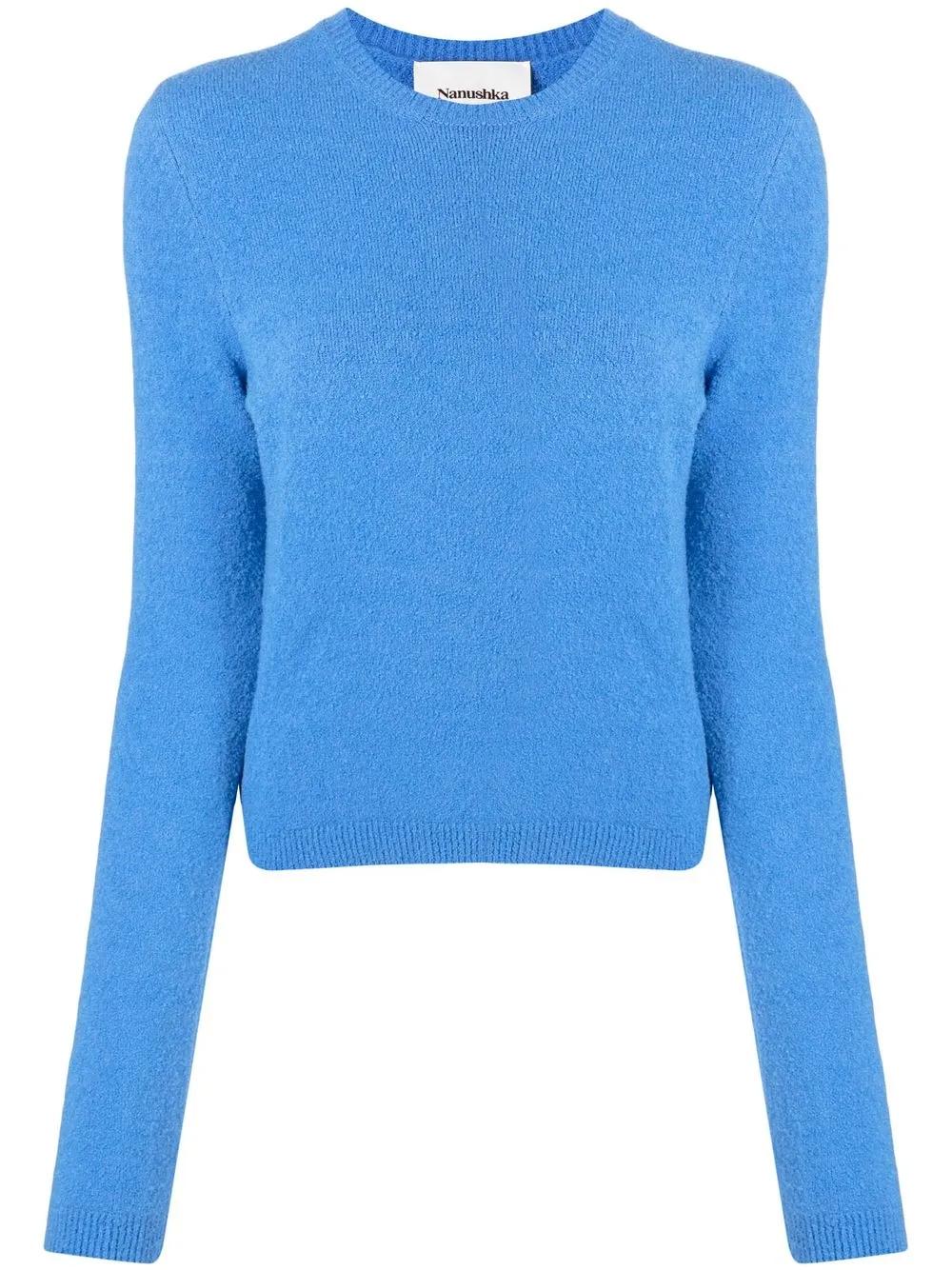 klein blue wool blend ribbed detailing round neck long sleeves straight hem